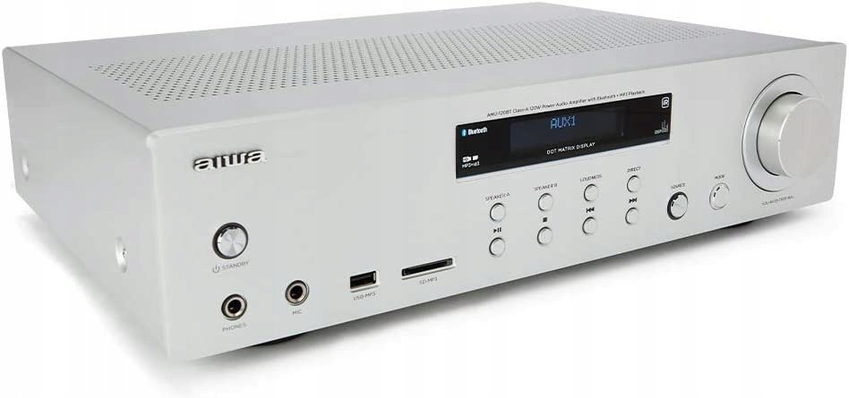 Підсилювач AIWA характеризується широким спектром входів, від цифрових карт Bluetooth, USB та SD до MM Gramophone. Існує навіть вхід мікрофона для запису голосу або караоке. Потужний підсилювач 2 х 60 Вт забезпечує неприємний звук, що заповнює. Регулювання басів, високих тонів та гучності дозволяє точно налаштувати звук до ваших налаштувань або отримувати найчистіший звук за допомогою функції прямого обходу.