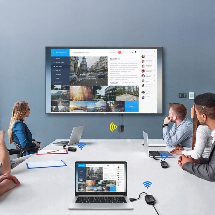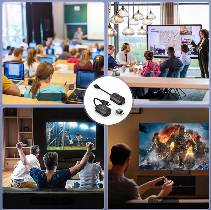 За допомогою передавача і приймача EDUP WD9905 ви можете легко передавати відео та аудіо 1080P із джерела (наприклад, комп’ютера). , ноутбук , смартфон, Play Station 5, Xbox) на великий екран або проектор.