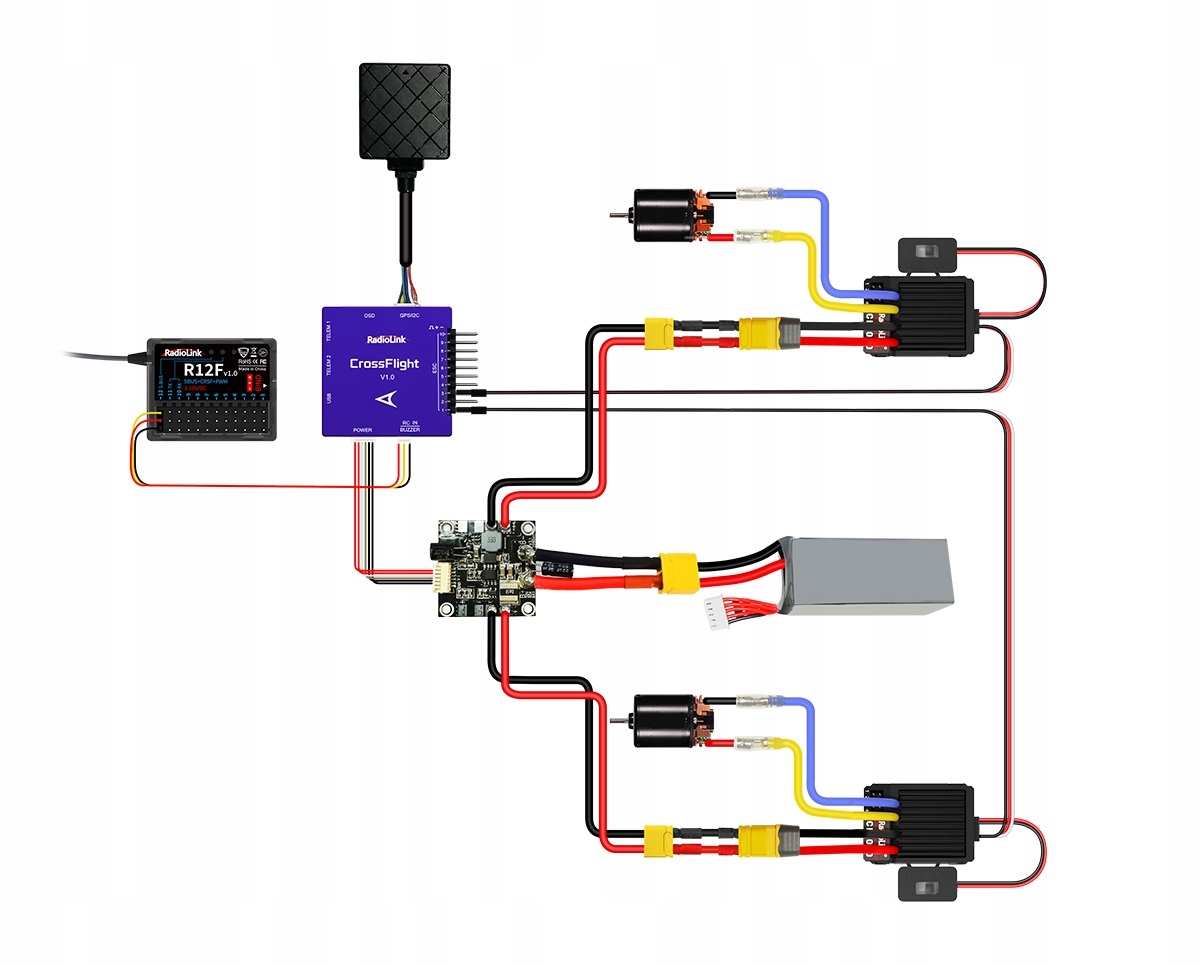 R12F із 12-канальним виходом сумісний із гелікоптерами, літаками, планерами, мультикоптерами, інженерними транспортними засобами, гоночними човнами, роботами, газонокосарками, човнами для приманки, мехами та іншими моделями, доступними на ринку.