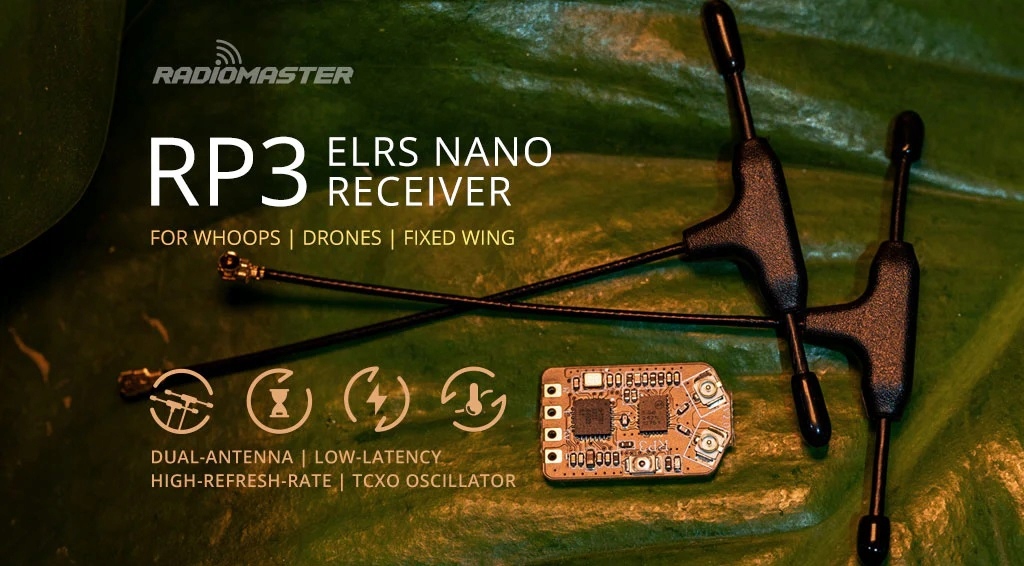 Розроблені на базі мікроконтролера ESP8285 і радіочастотного чіпа SX1280IMLTRT, приймачі серії RP пропонують радіочастотні Lora та FLRC 2,4 ГГц, що забезпечує неймовірний діапазон і низьку затримку. Завдяки вбудованому Wi-Fi оновлення програмного забезпечення можна виконувати, не знімаючи ресивер з моделі. Сполучення можна здійснити за допомогою фрази посилання, що означає, що не потрібно з’єднувати штекери чи натискати кнопки під час під’єднання акумуляторів.