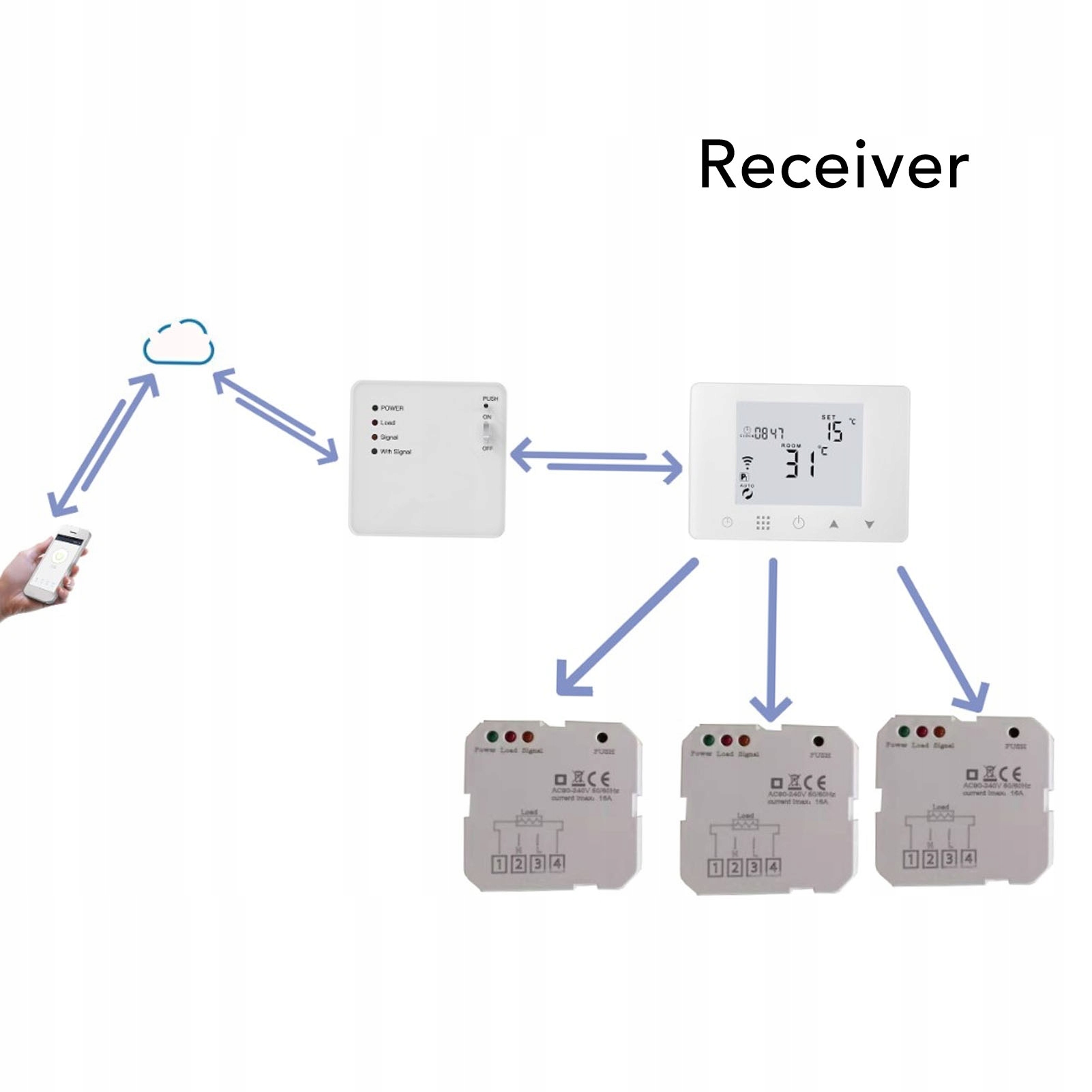 1, легке керування: робота з контролером температури, який не входить до комплекту, приймач може запускати електричну систему опалення. 2、Стабільність сигналу: забезпечуючи високу чутливість прийому сигналу, приймач термостата також забезпечує швидку та точну відповідь. 3、Надійна робота: максимальний струм становить 16 А, а напруга — 90-240 В змінного струму 50/60 Гц, що робить усі операції та роботу надійними. 4、Хороший матеріал ПК: використання високоякісного матеріалу ПК, який є вогнестійким, ізольованим, безпечним і дуже міцним проти корозії та тепла. 5, швидкий монтаж: він має невеликі розміри та легку вагу, а приймач системи електричного опалення легко встановити.