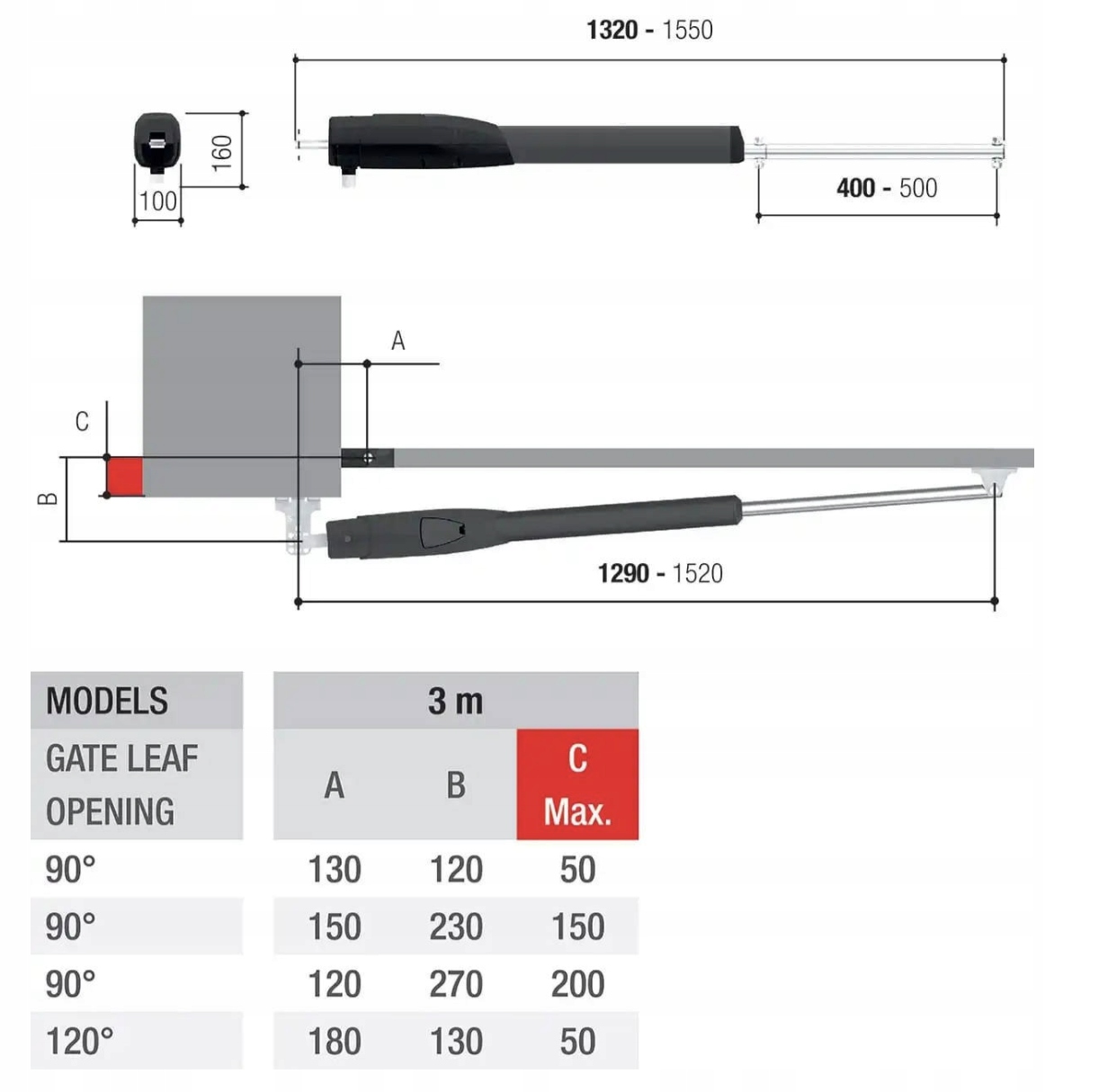 Набір готовий до самостійного складання і призначений для подвійних воріт з максимальною довжиною крила до 3 метрів.