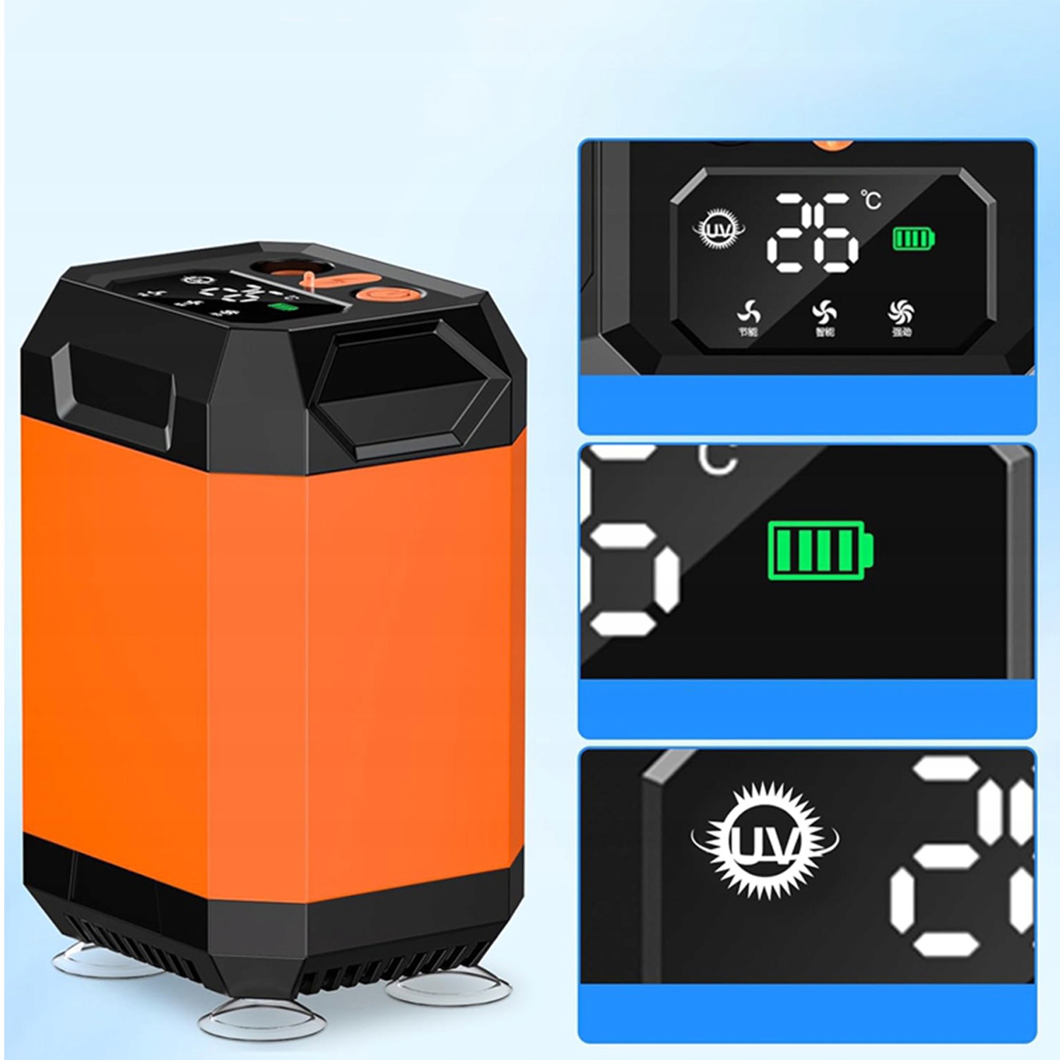 ✔, що в режимі реального часу, ви можете в будь -який час перевірити рівень акумулятора, щоб мати можливість заряджати його вчасно. Екран також відображає температуру в режимі реального часу для ефективного запобігання опіків.