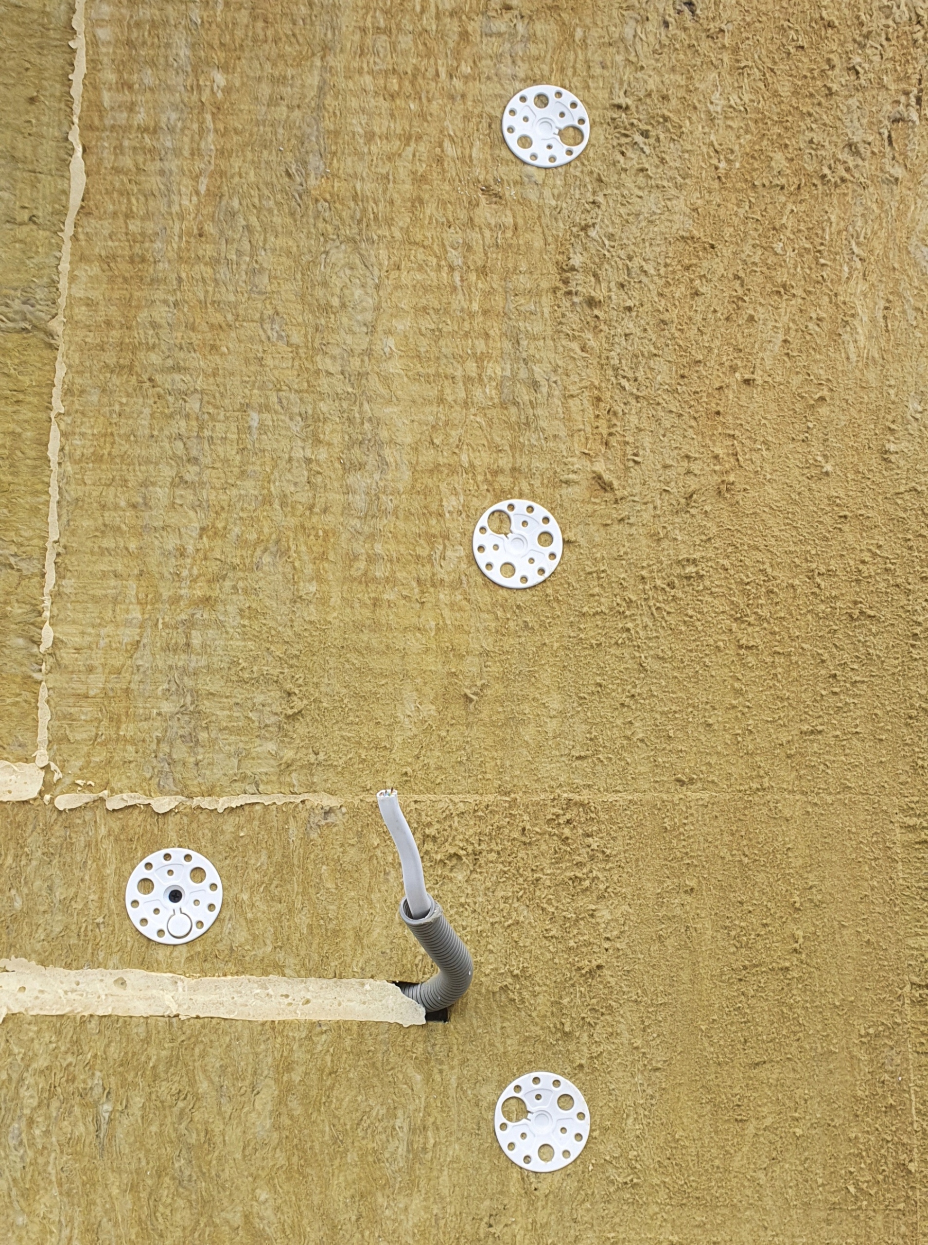 у канадській системі (дерев’яна стіна) або горищ (прикріплення вати до землі)