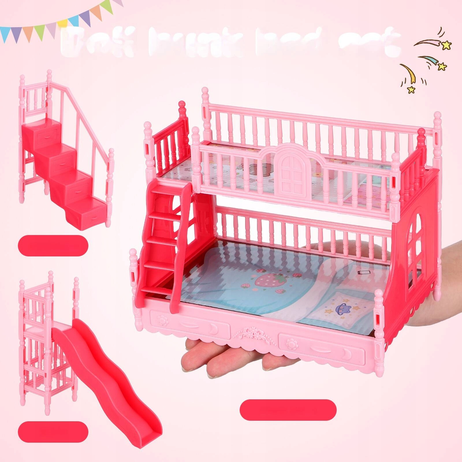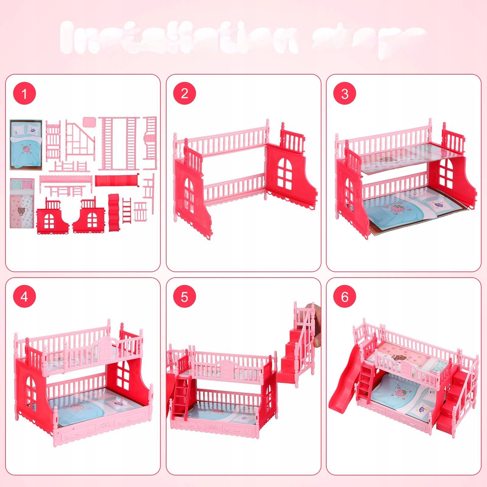 ✅mini Розмір і мала, міні -двоярусне ліжко не займе багато місця для вашої ляльки. Розміщення в спальні, щоб встановити систему спальні.