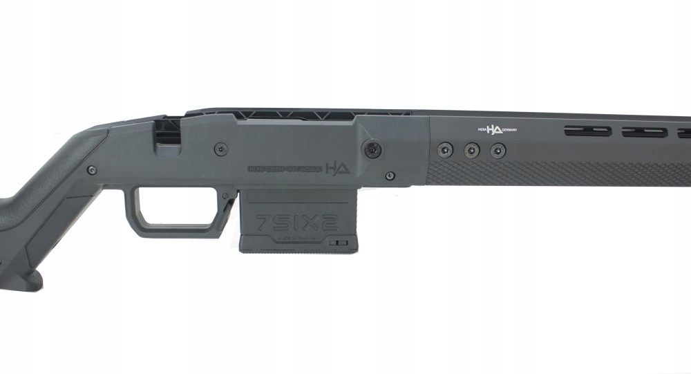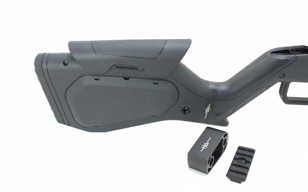 Сучасний простий в установці приклад Hera H7, призначений для повторювачів Howa 1500. Станина виготовлена з полімерів і дюралюмінію. Металева підкладка забезпечує повторюваність розташування ствольної коробки і хороші параметри фокусування. Регульована накладка на щоку покращує композицію під час стрільби з оптичним прицілом. У комплекті 2 проставки, які дозволяють індивідуально регулювати довжину приклада. Ергономічна спортивна ручка заслуговує на увагу.