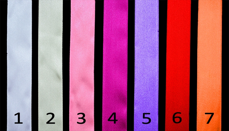 Доступні кольори стрічки: 1. білий, 2. екрю, 3. рожевий, 4. фуксія, 5. фіолетовий, 6. червоний, 7. помаранчевий.