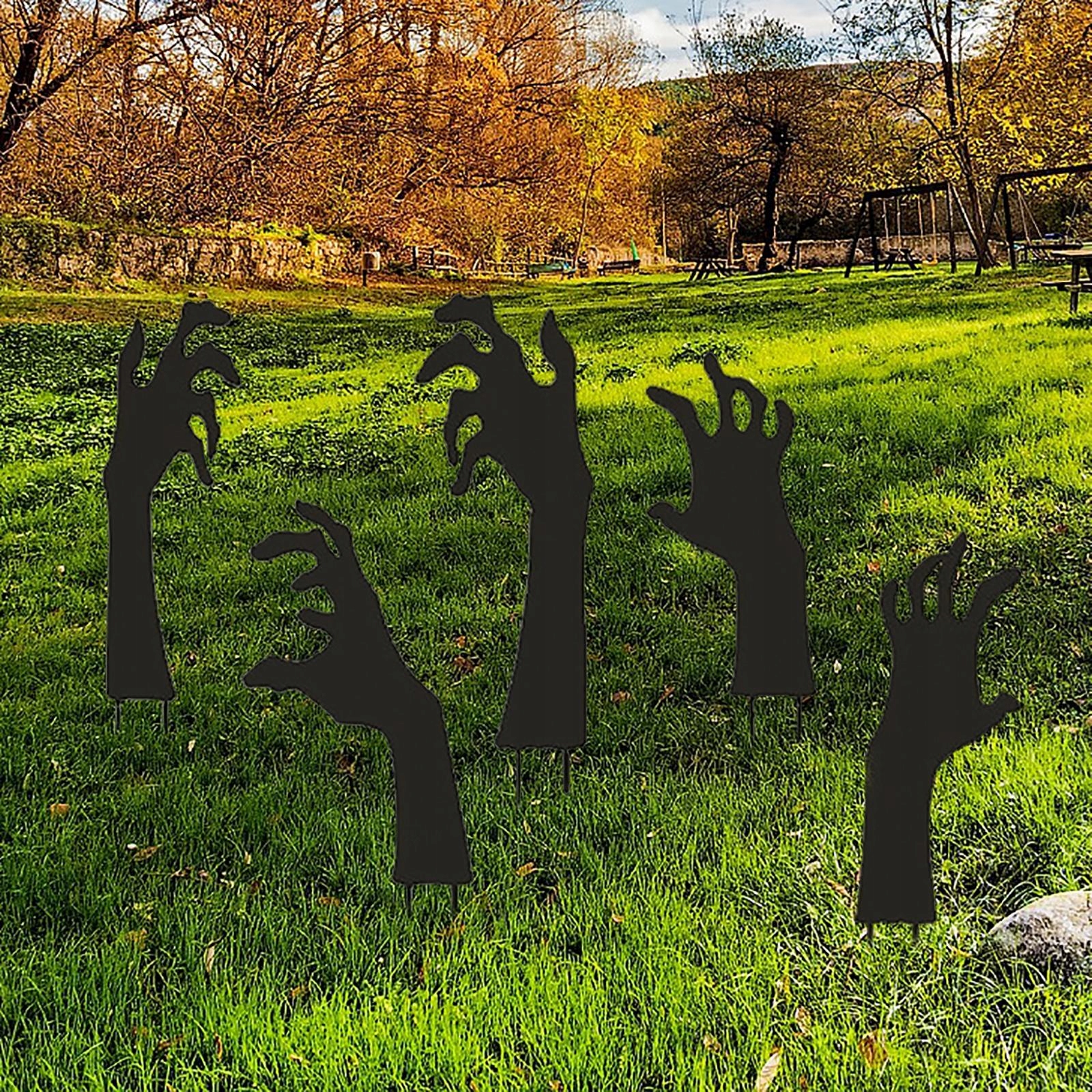 Матеріал: садові прикраси на Хелловін. Рука пекла зроблена із заліза, міцна та добре зроблена, вона не зникає легко під впливом сонця, води і погана погода.