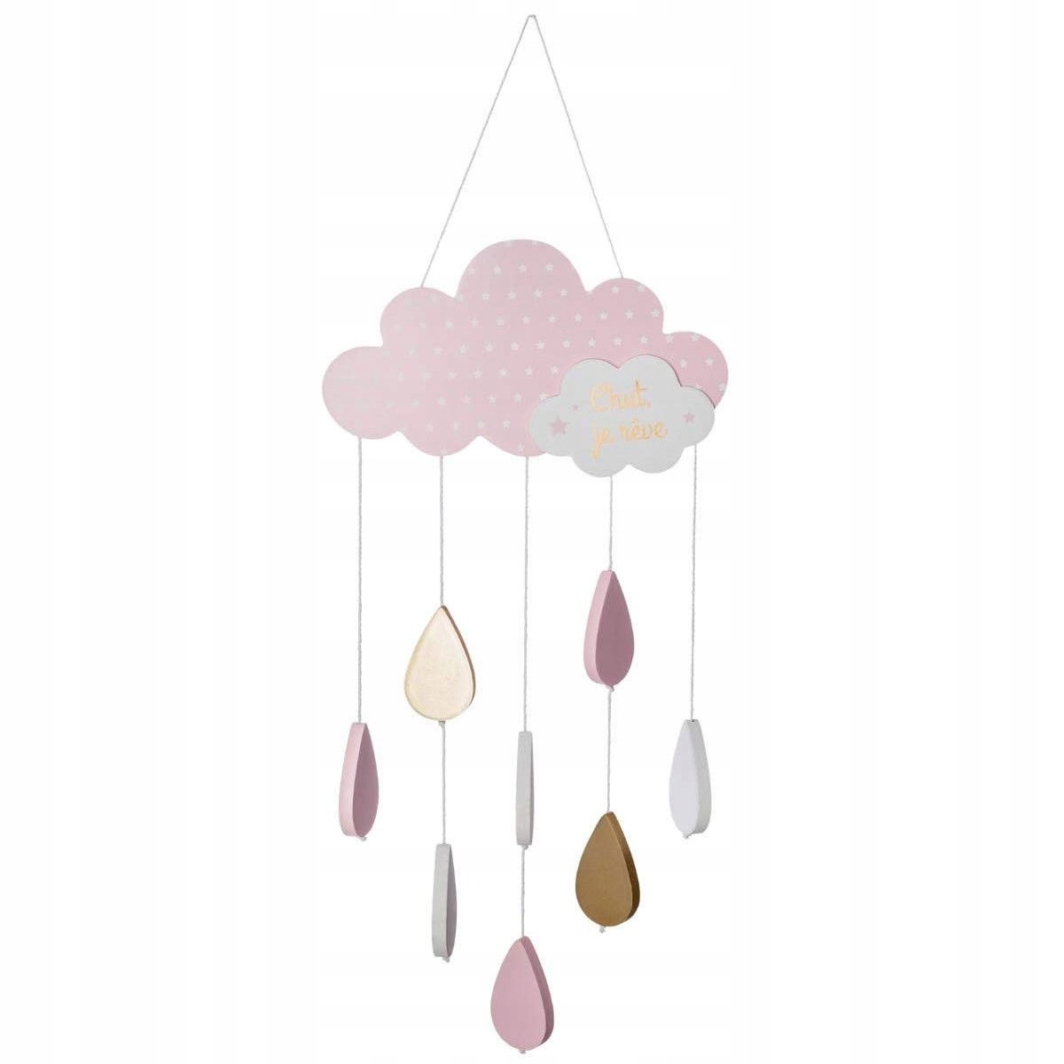 Декорація дитячої кімнати, підвісна прикраса для дітей, рожева хмаринка від Atmosphera for kids - чудова прикраса у формі хмаринки для дитячої кімнати. Він містить дві хмари, більшу рожеву та меншу білу, з яких звисають маленькі дощові краплі. Все це зроблено з великою увагою до деталей і виглядає надзвичайно чарівно. Пастельні кольори привносять в інтер'єр спокійну, приємну атмосферу. Вони чудово впишуться в облаштування дитячої спальні, де необхідно використовувати приглушені кольори, щоб забезпечити дитині належні умови для сну.