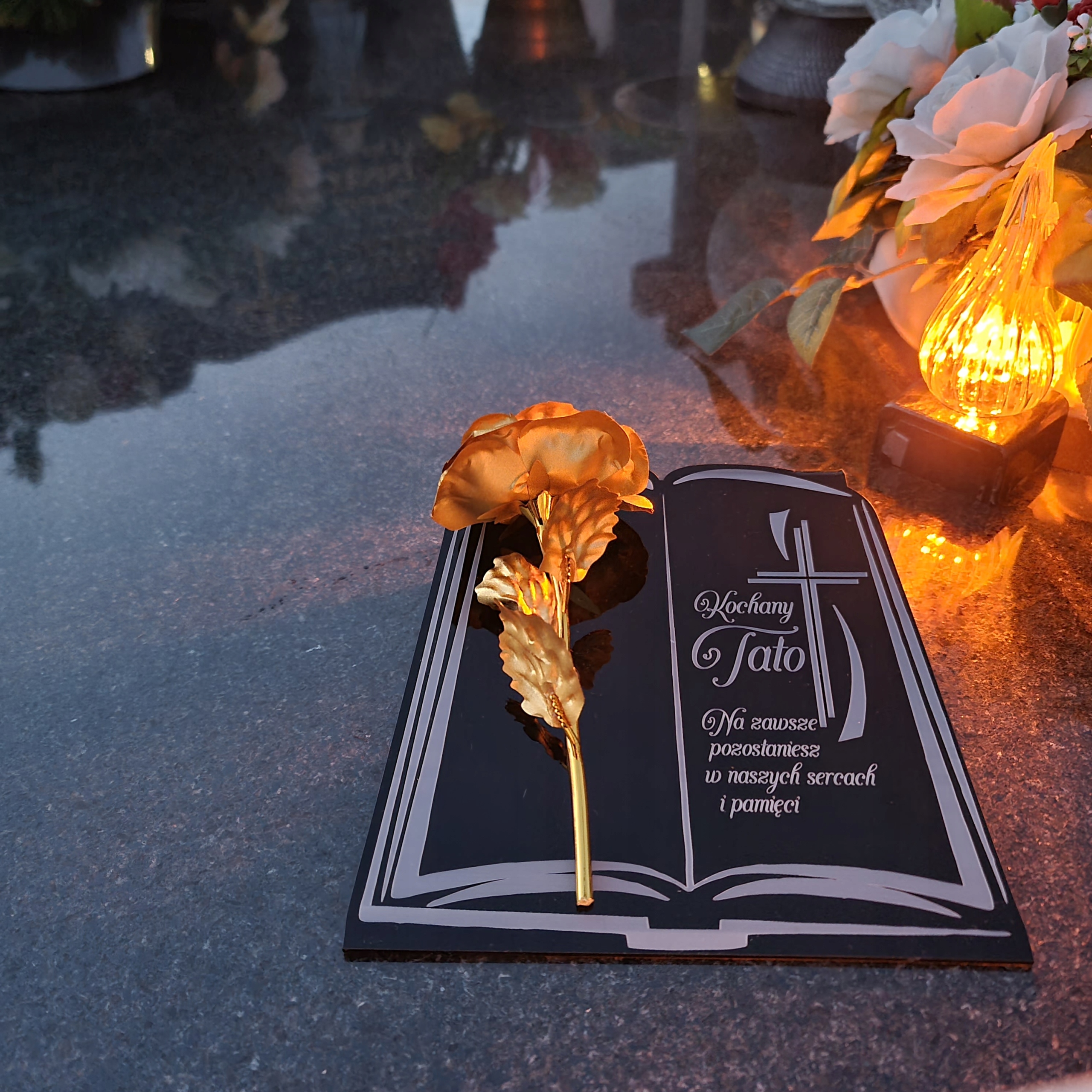 Прикраса для гравірованої могильної свічки підставка для кладовища Рожі для тата