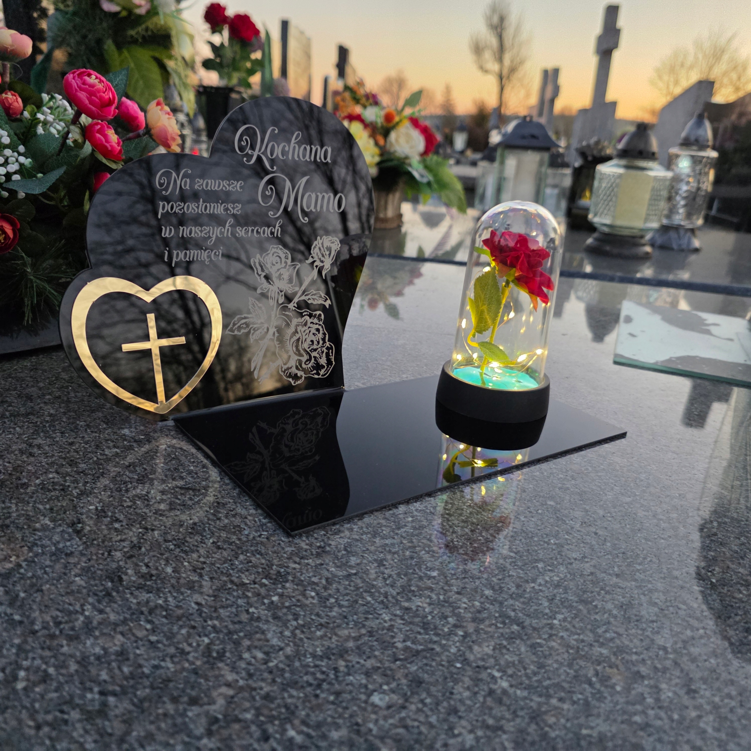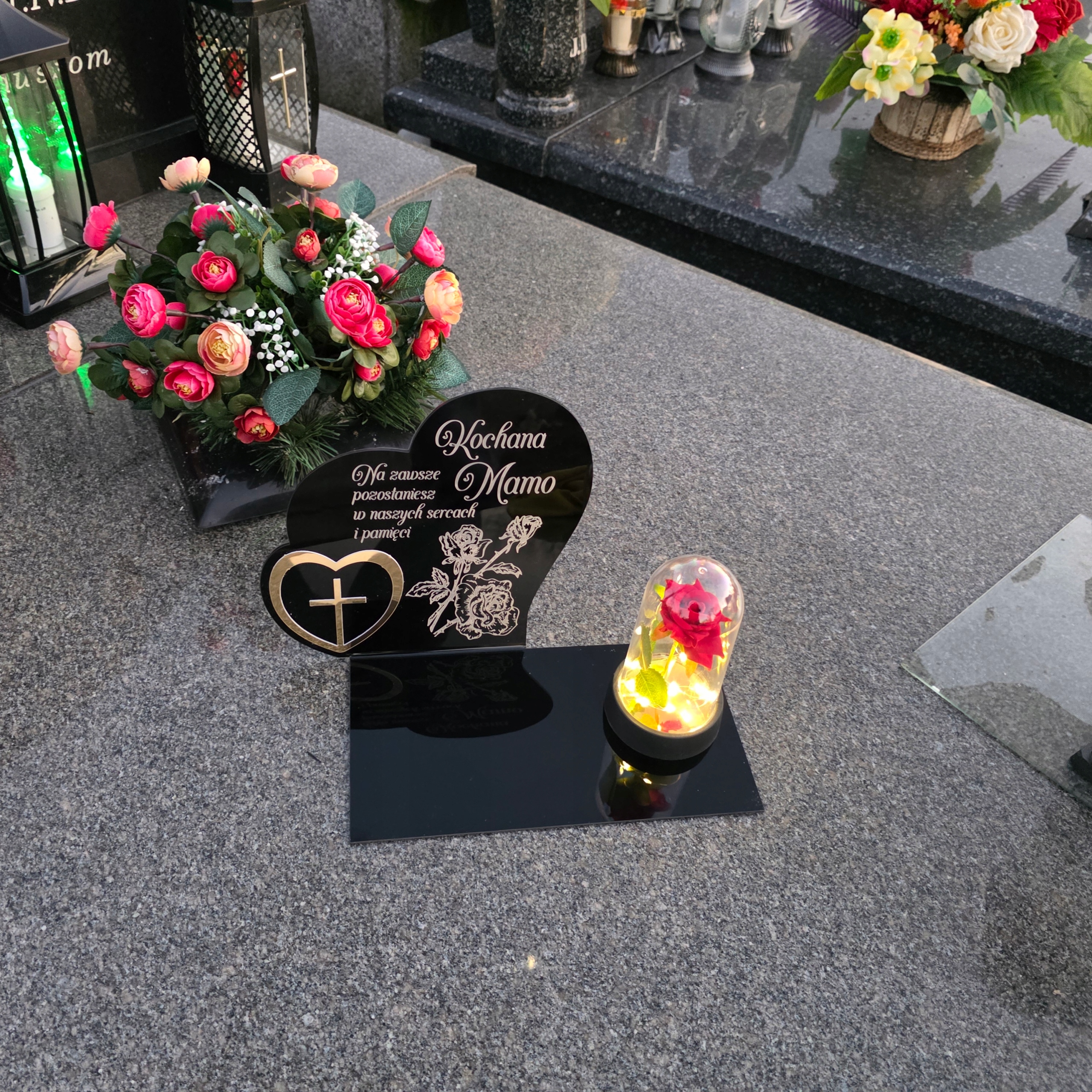 Вічна свічка на могилі з гравірованою акриловою скляною підставкою