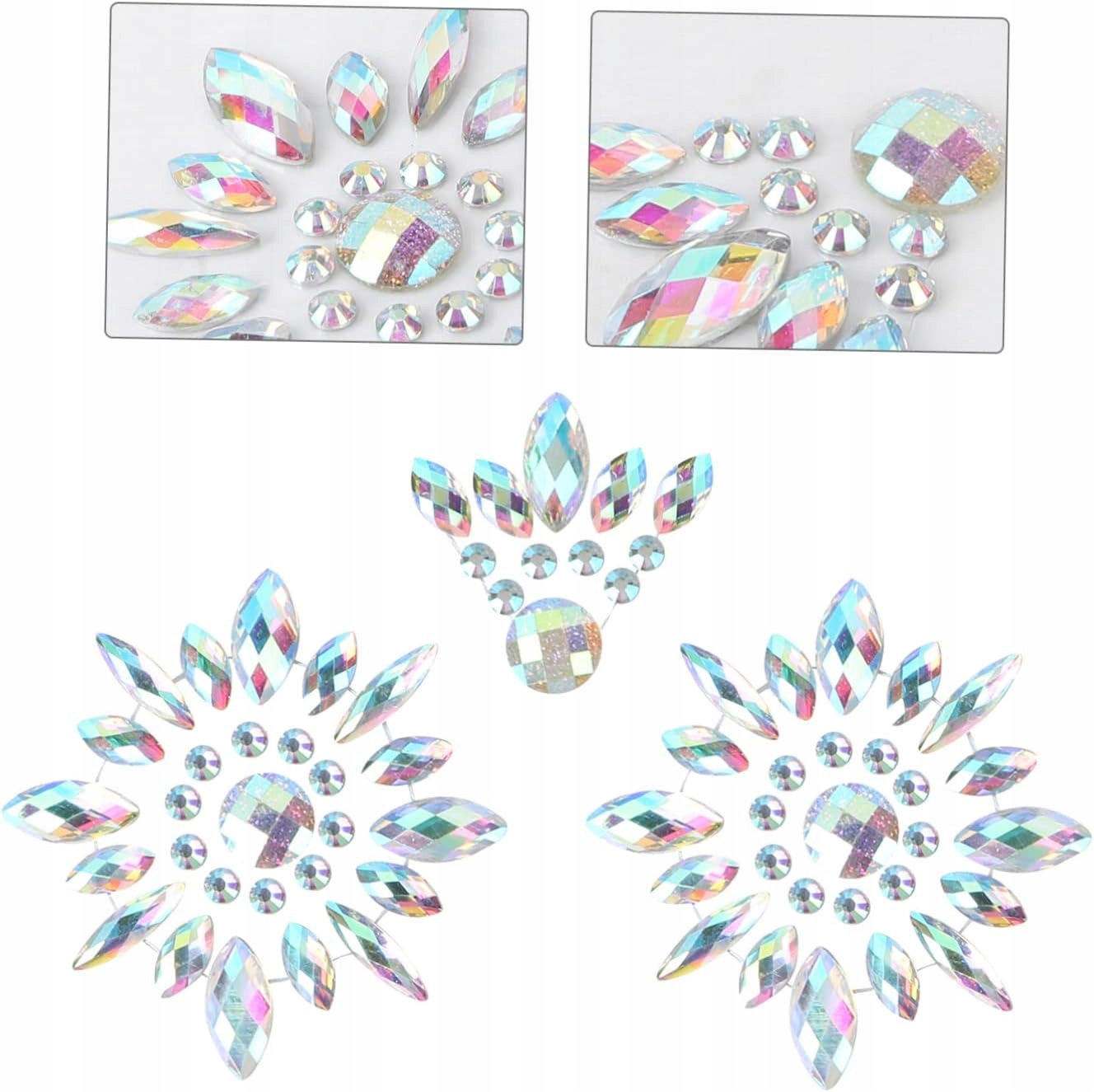✭ Прикраси виготовлені з барвистого, кристалічного цирконії з голографічним блиском . Вони є ідеальним доповненням до будь -якого вбрання і, безумовно, змусять вас почувати себе особливими. Після використання очистіть наклейку клею за допомогою бавовняної прокладки, просоченої алкоголем. Використовуйте будь -який клей, призначений для використання до шкіри. Однак ми не рекомендуємо використовувати для чутливої та алергічної шкіри.