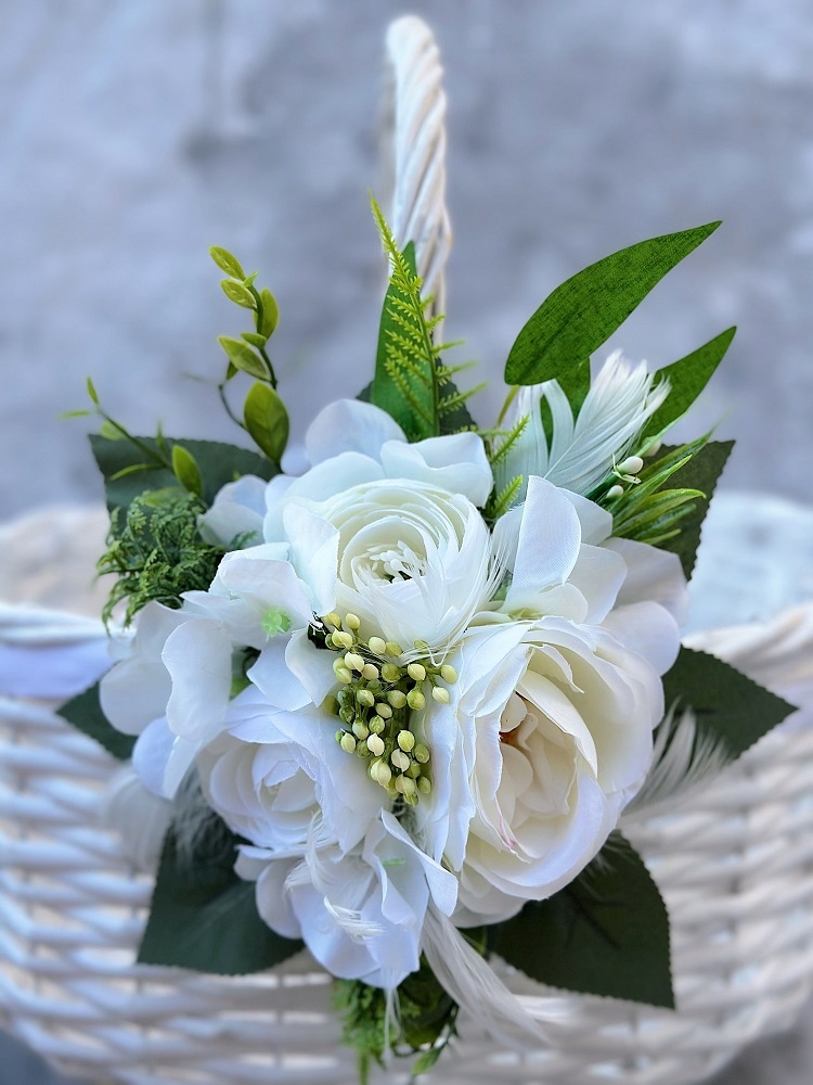 прикраса для великоднього кошика , виготовлена з штучних відтінків білого.