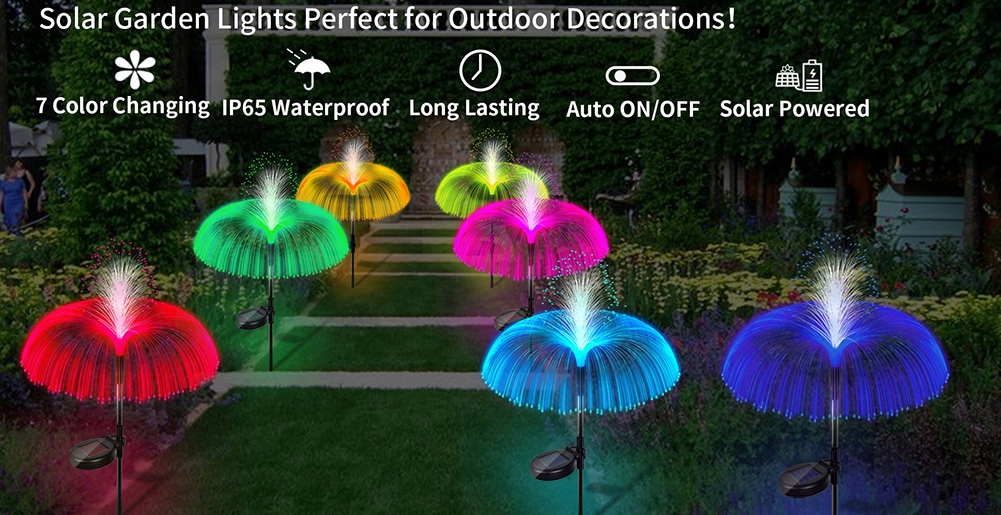 Сонячні світильники для зовнішнього використання в саду мають 7 змін кольору. Ці сонячні волокнисті світильники є чудовим вибором для прикраси саду та шляху. Зробіть ваш сад виглядати більш барвистим.