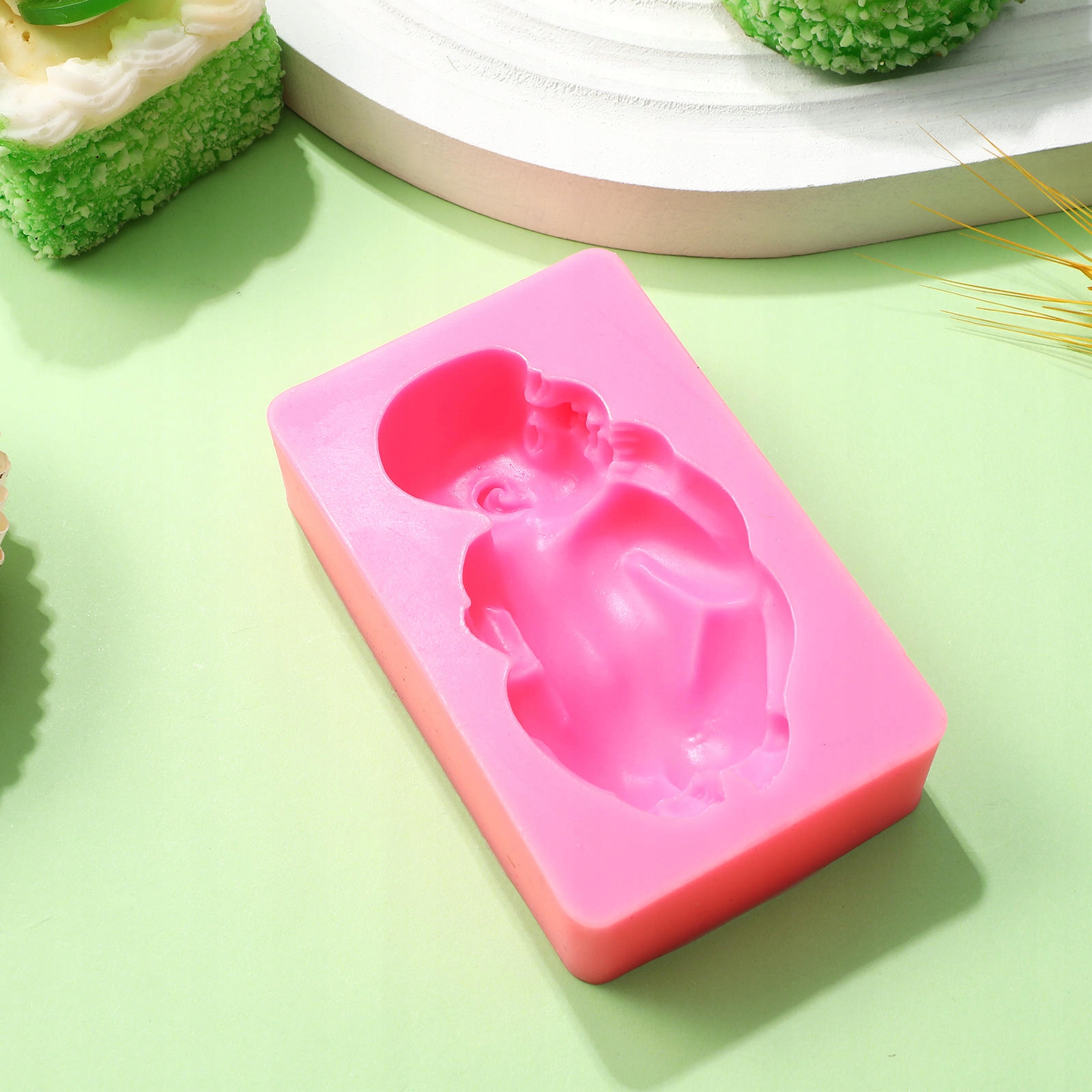 ✅ten Об'єкт - це силіконовий пиріг. Він виготовлений з найвищої якості силіконового матеріалу, захисту від навколишнього середовища, без смаку та нетику. Дизайн форми сплячої дитини, дуже цікава, робить гастрономію веселішим. Завдяки цьому ви можете легко зробити торт. Підходить для приготування помадки, торта, шоколаду, цукерків, кубиків льоду, желе чи будь -яких ремесел, які ви можете собі уявити.