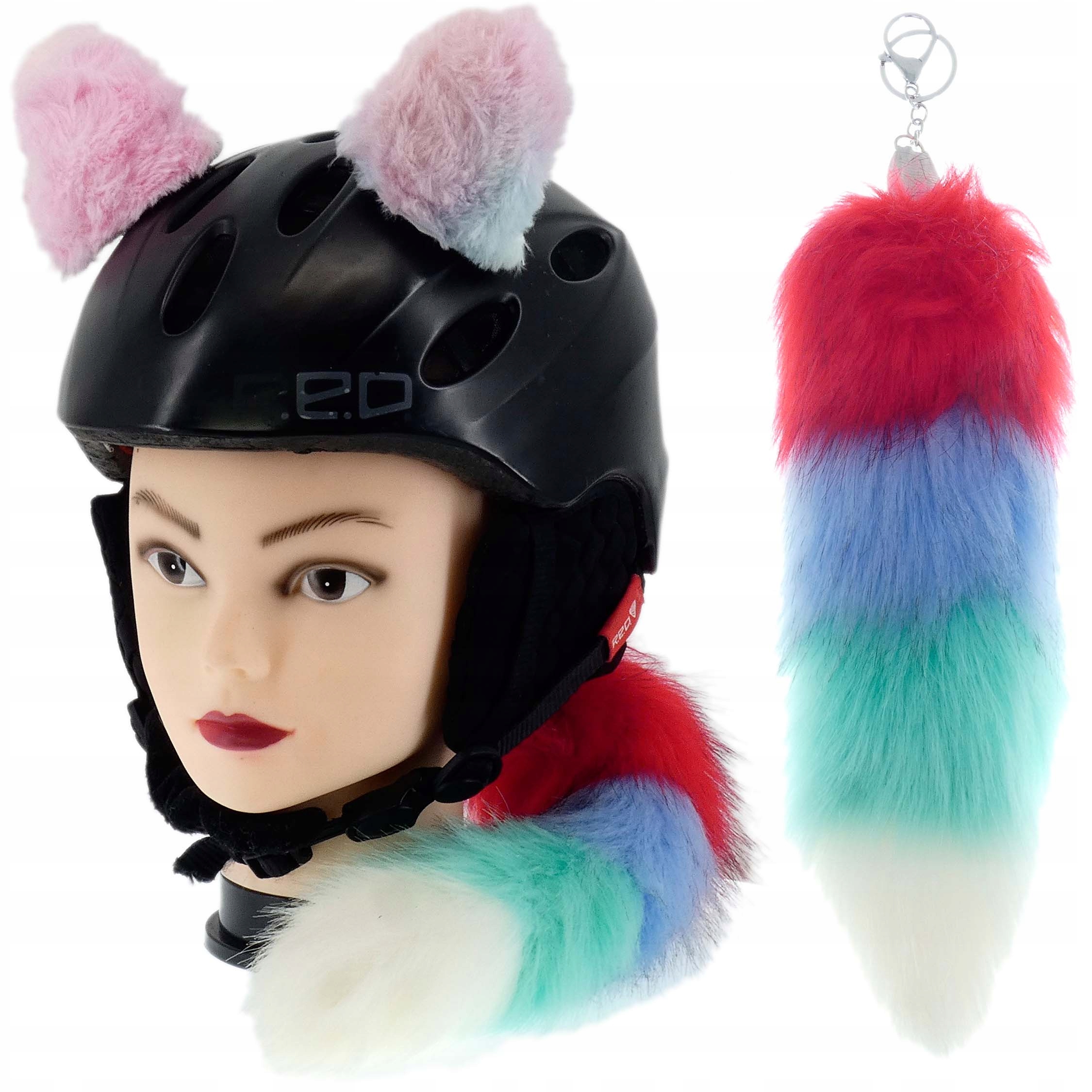 ДЕКОРАЦІЯ ДЛЯ ЛИЖНОГО ШОЛОМА З ВУШКАМИ НА ЛИПУЧКАХ РОЖЕВИЙ КІТА СЯЄТЬСЯ КОЛЬОРОМ LED