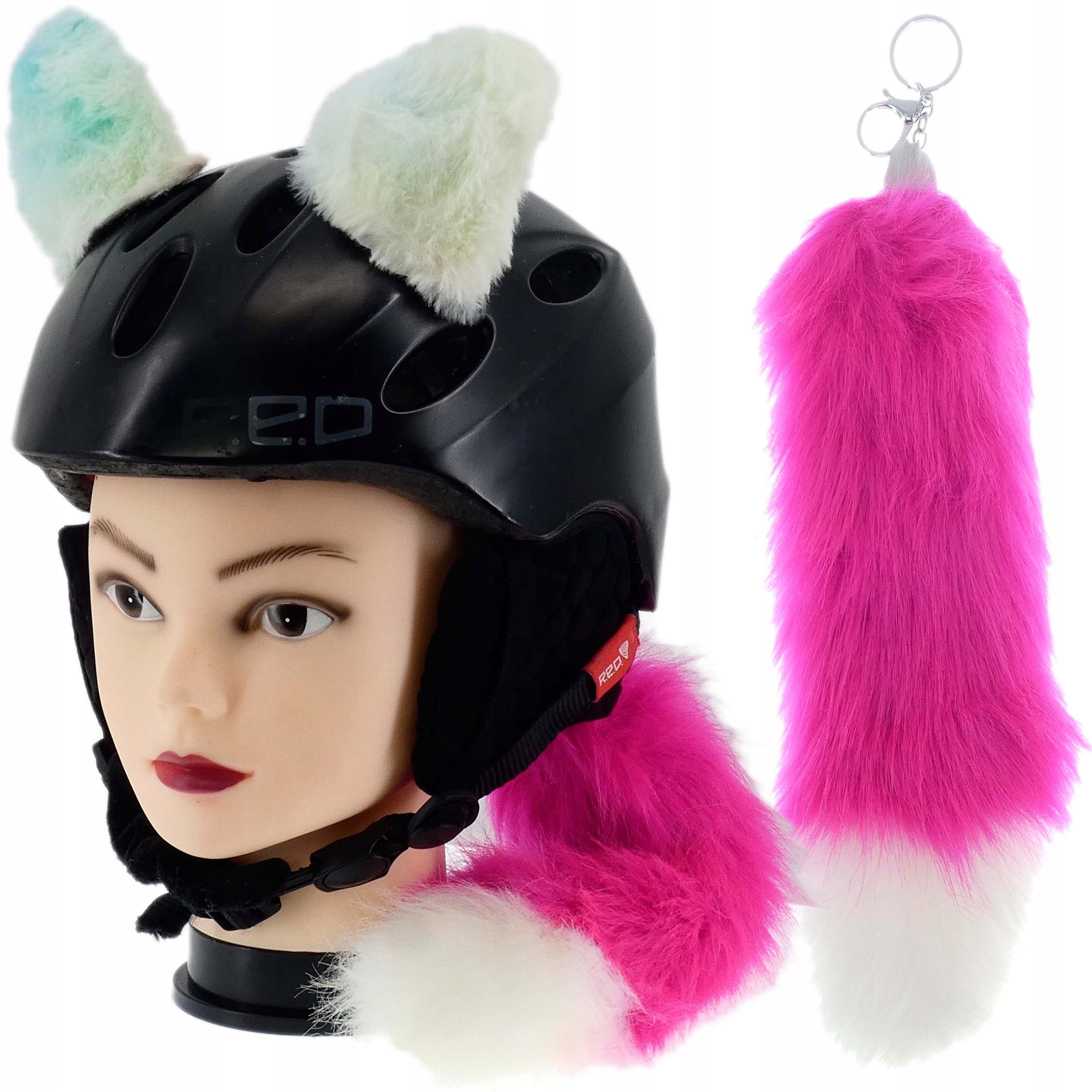 ДЕКОРАЦІЯ ДЛЯ МОТОЦИКЛЕТНОГО ЛИЖНОГО ШОЛОМА З ВУШКАМИ НА ЛИПУЧКАХ, СЯЮЧИЙ РОЖЕВИЙ