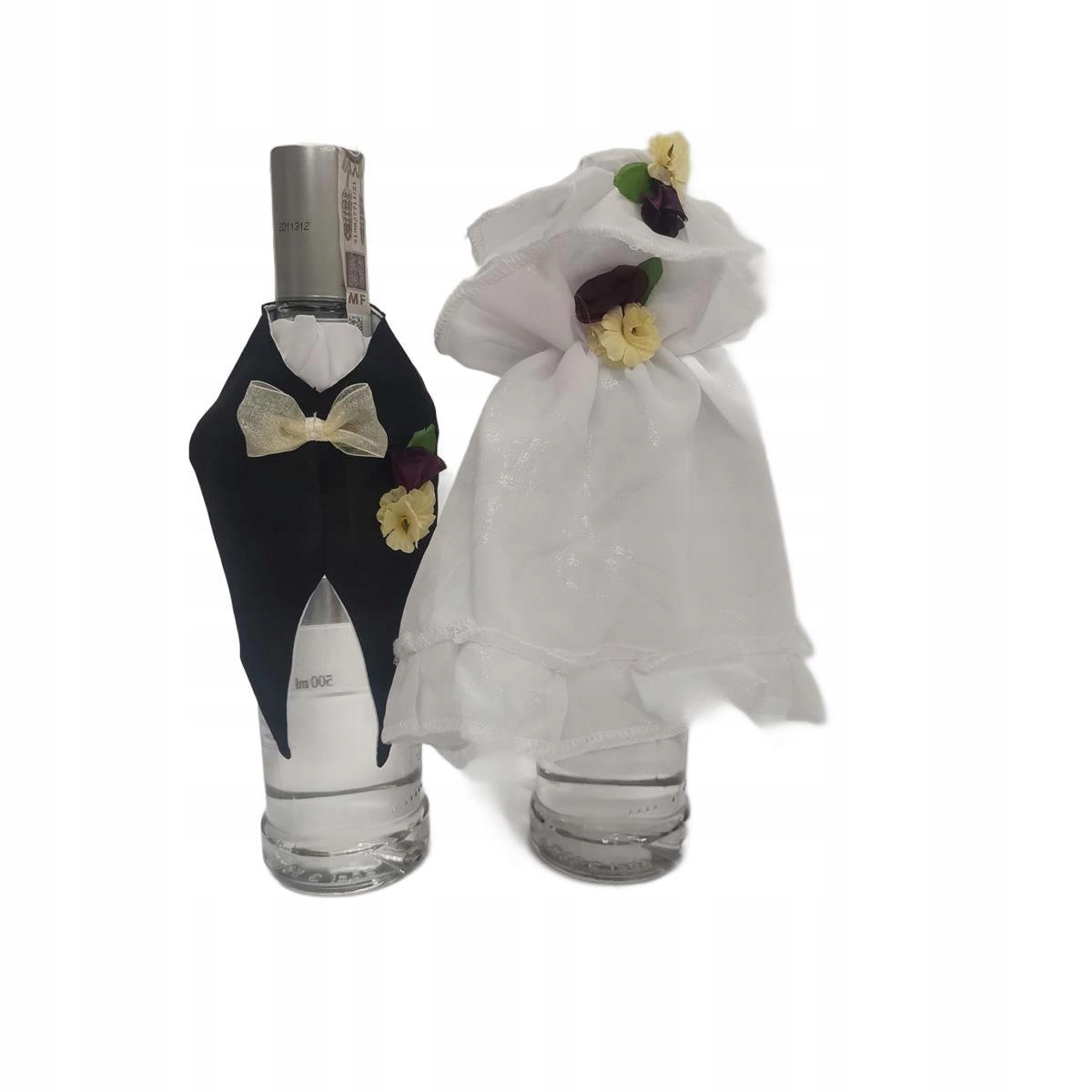пляшка для пляшки у стилі весільної сукні та хвостового покриття з капелюхом - ідеальний декоративний елемент для весілля, яке принесе елегантність та стиль до вашого столу. Завдяки ретельному виконанню та догляду за деталями, це створить унікальну атмосферу, ідеально завершивши всю весільну домовленість. Одяг зробить пляшки не тільки функціональними, але й вражаючою прикрасою. Пам'ятайте, що фото ілюструє загальний дизайн, а кольори та тип квітів можуть відрізнятися від представлених. Створіть незабутні спогади про особливий день, додаючи унікальний акцент на своє весілля.