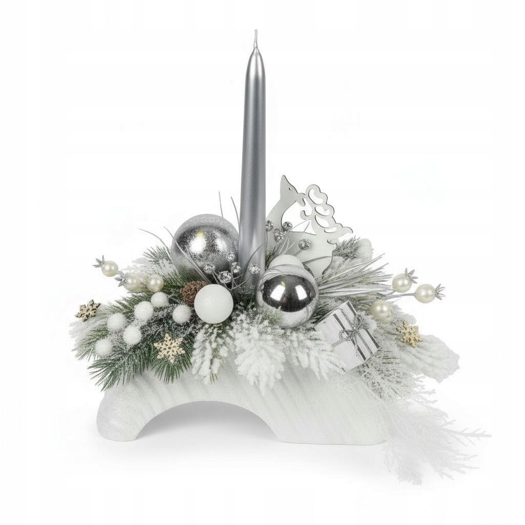 Принесіть у свій дім чарівну святкову атмосферу за допомогою цієї стильної різдвяної прикраси. Композиція створена з увагою до кожної деталі, поєднуючи сучасну елегантність із затишною зимовою атмосферою.