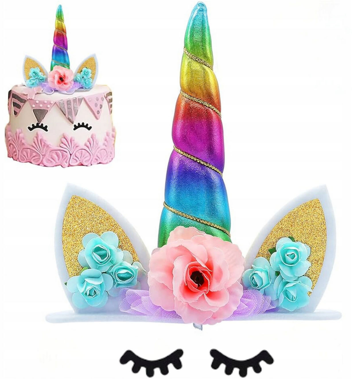 ДЕКОРАЦІЯ НА ТОРТ ЄДИНОРІГ РІГ ЄДИНОРОГА + ВІЇ ВЕСЕЛКА КОЛЬОРОВИЙ