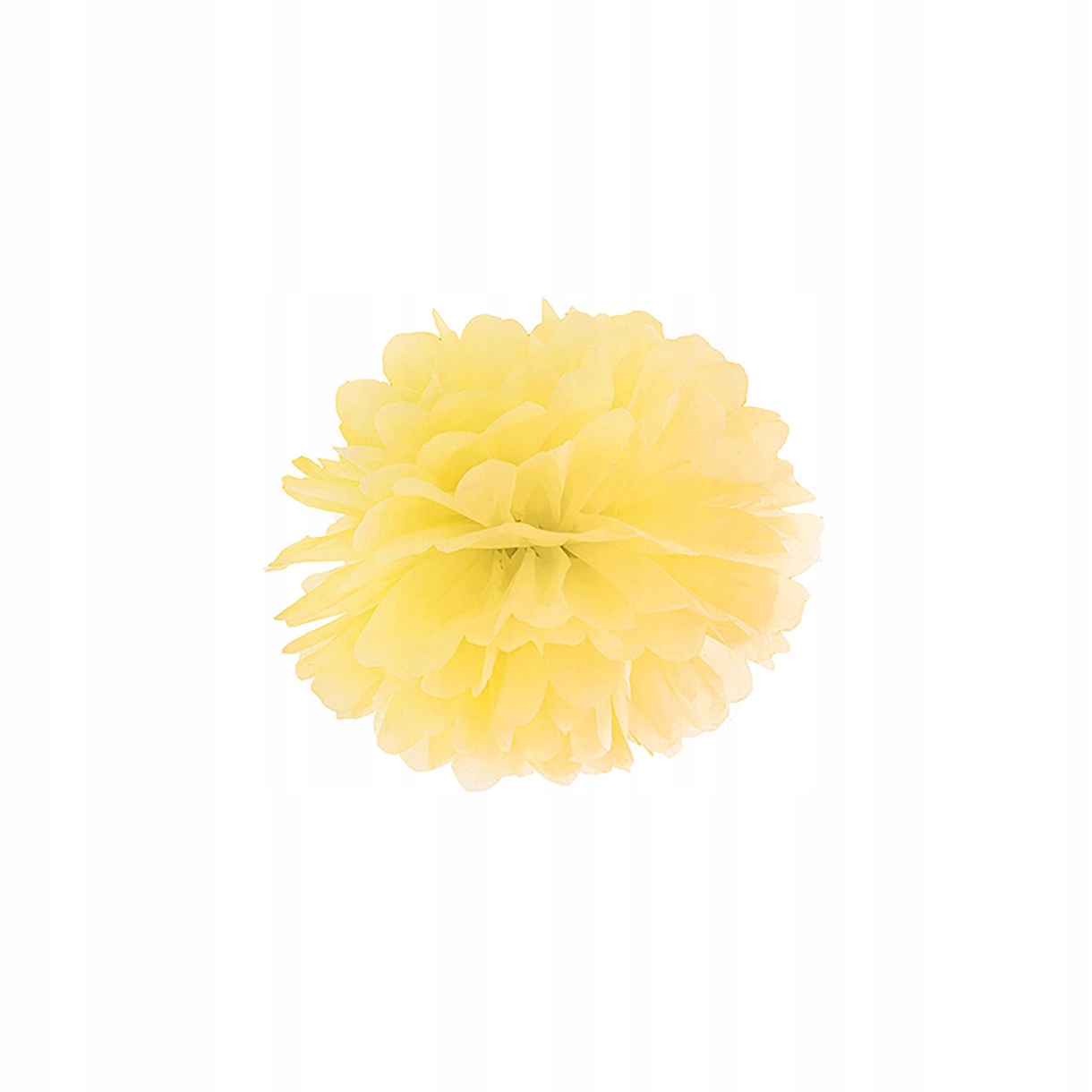 Цей красивий помпон з цигаркового паперу елегантного жовтого кольору стане ідеальним доповненням до різних прикрас. Його розмір становить 25 сантиметрів, що робить його виразним декоративним елементом.