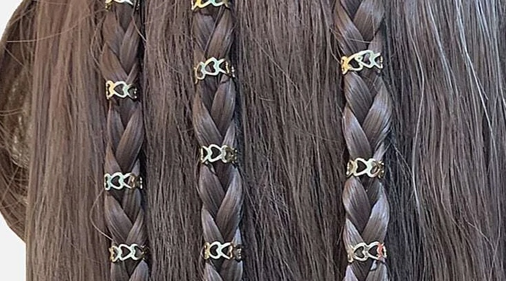 Кільцями для волосся можна прикрасити синтетичне та натуральне волосся. Прикраси можна розміщувати на косах і пасмах волосся.