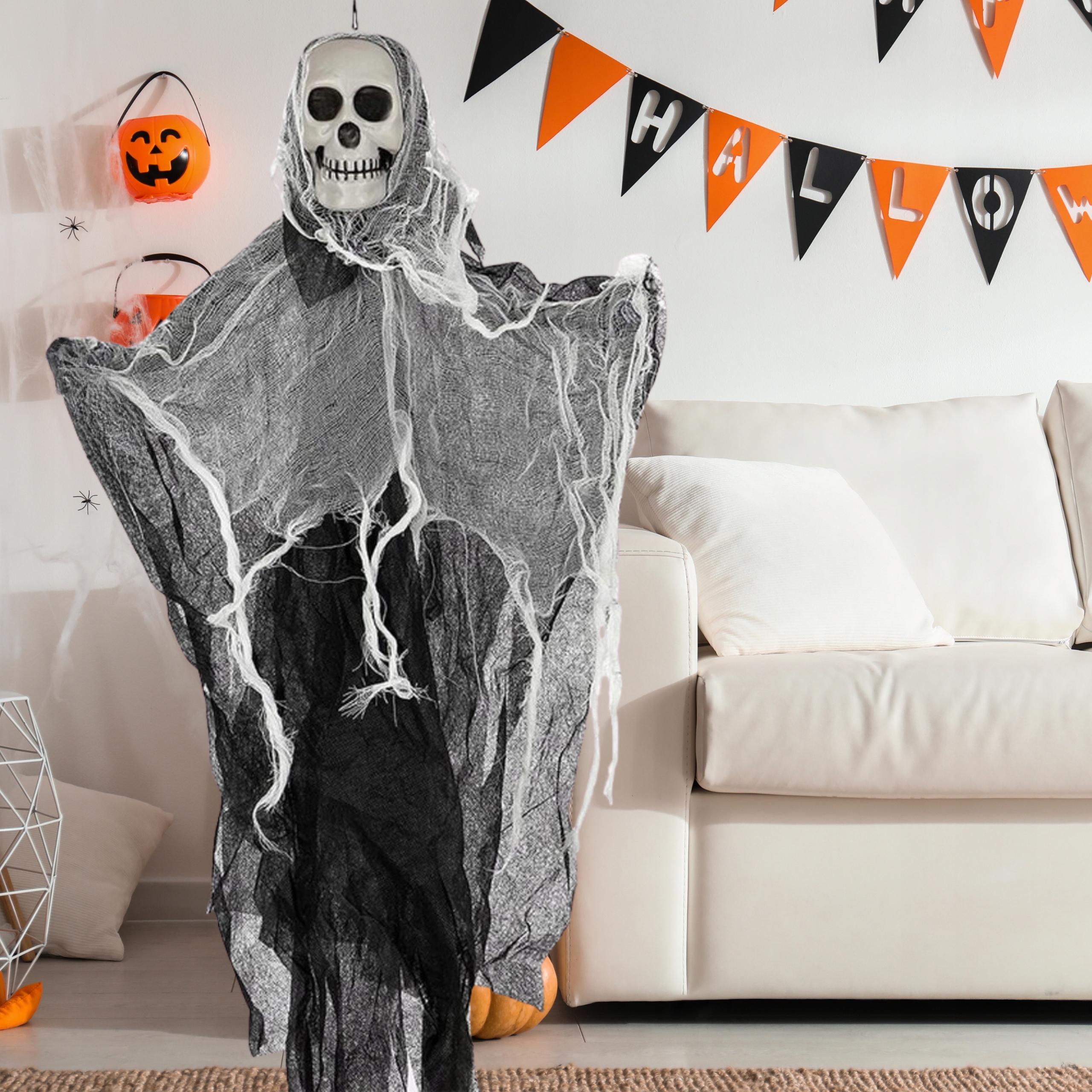 вдосконалені деталі скелета та повітряного халату роблять прикрасу надзвичайно вражаючим. Це ідеальне рішення, якщо ви хочете створити темну атмосферу і ввести ноту жахів у інтер’єр. Ваші гості, безумовно, відчують, що вони знаходяться в справжніх пейзажах на Хеллоуїн.