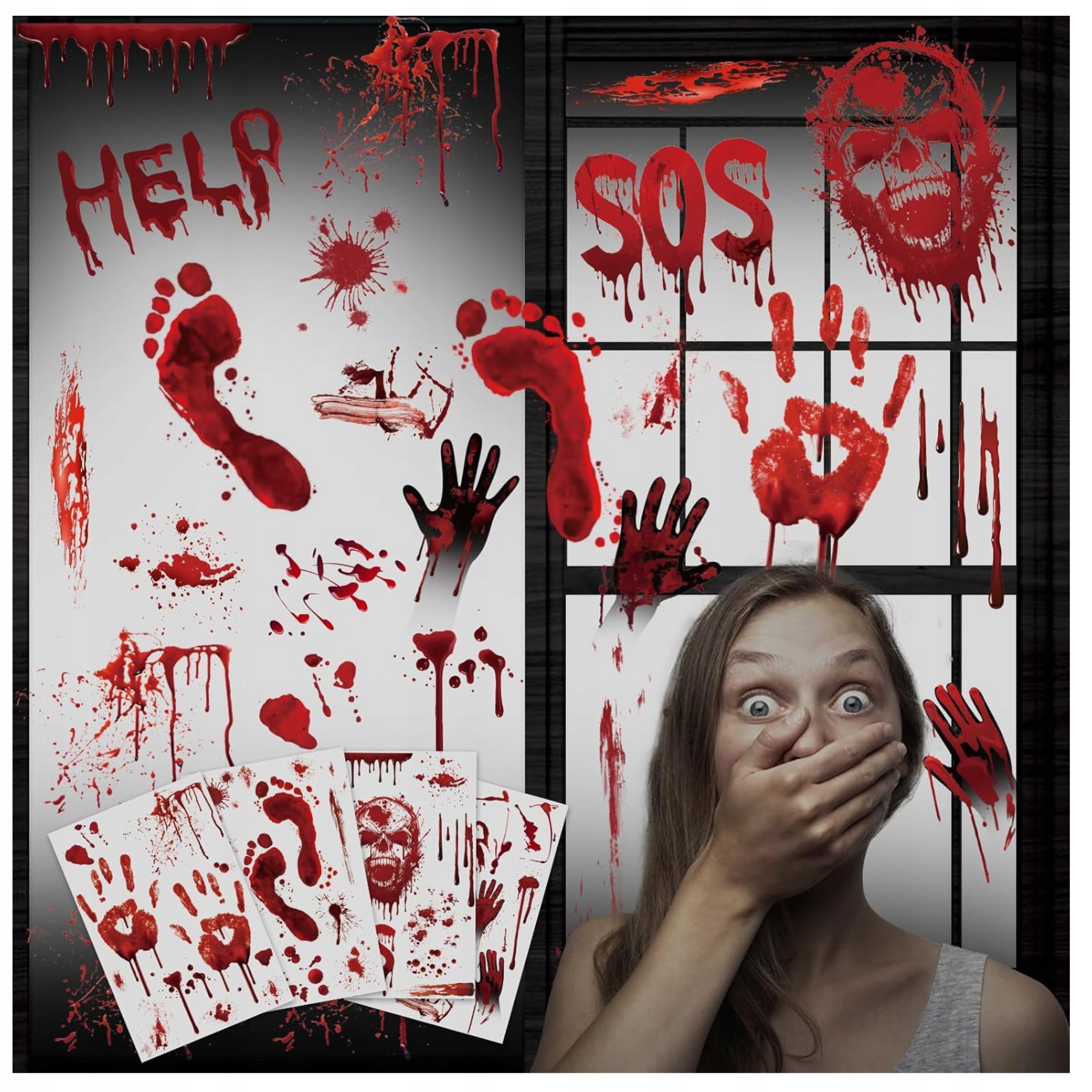 Ці реалістичні, природні розміри наклейки з кривавими руками та слідами, плямами крові та драматичними написами, такими як "допомога" або "соус", ідеально підходять для створення жахливої атмосфери. Просто покладіть їх на вікна, дзеркала або підлоги, щоб викликати гостей тривогу та представити атмосферу жахів.