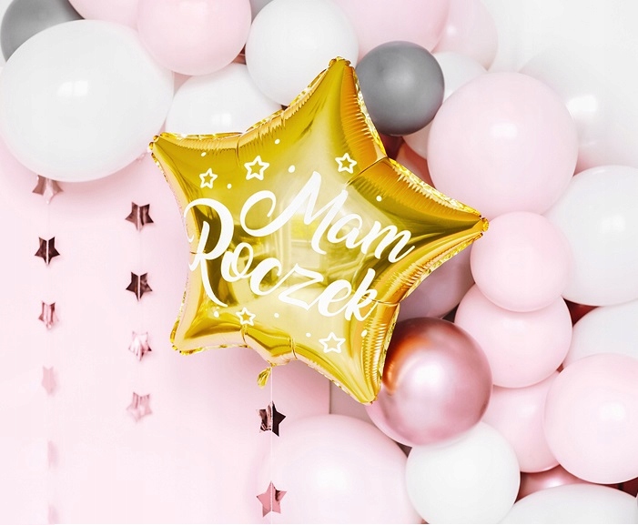 Золота зірка з повітряною кулею з друком- річний друк- 35 см до накачування повітрям або гелієм