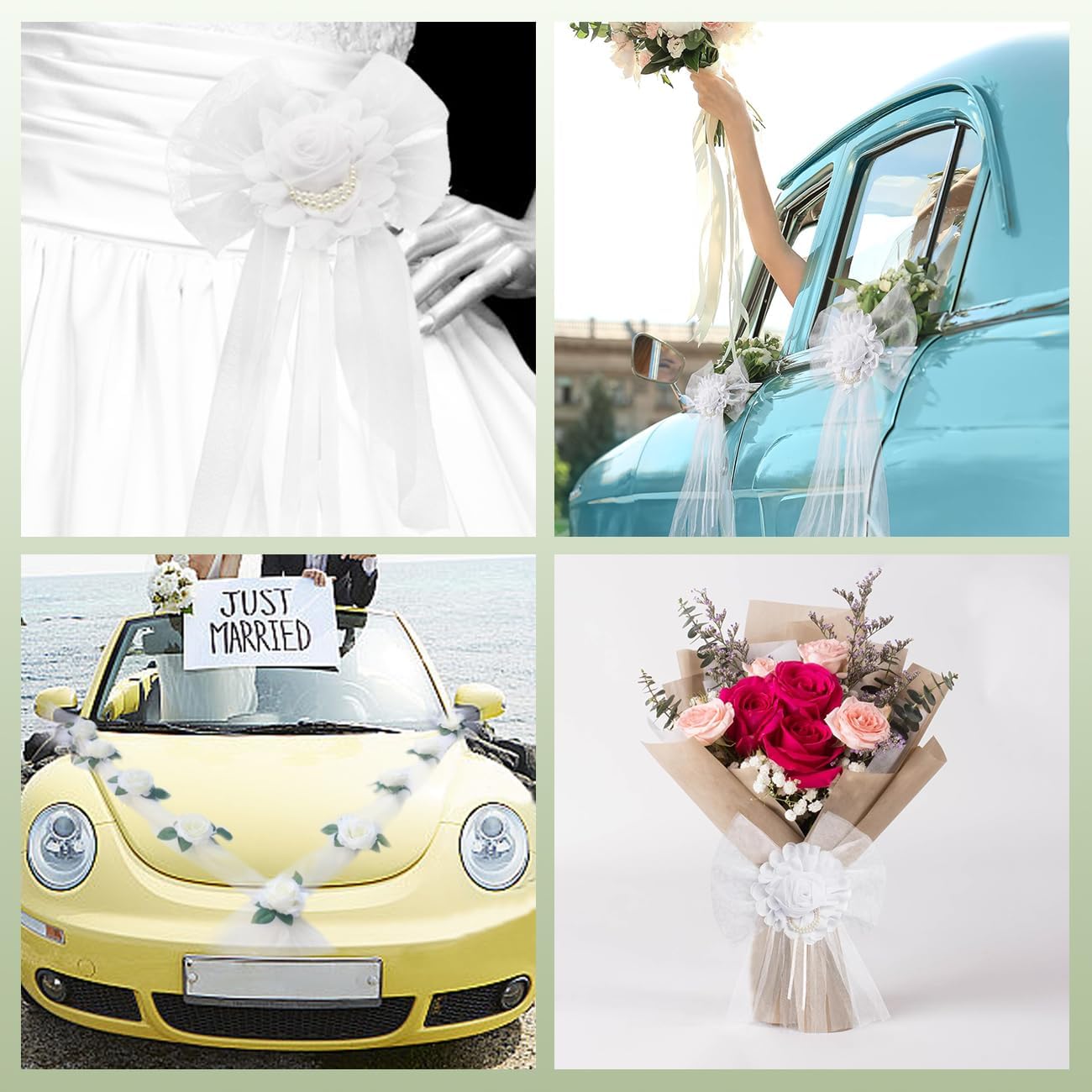 Прикраси весільних автомобілів Прикраси штучних квітів для весільної машини, біла