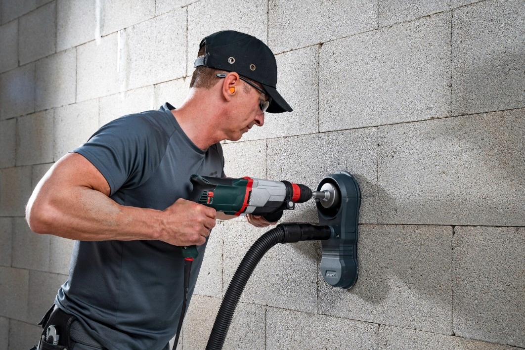 4◼ ➡ Конструкція в той же час запобігає утворенню знаків пилу , завдяки якому стіни залишаються надійно чистими та непошкодженими - ідеальним рішенням, якщо ви хочете свердлити на низькому рівні запилення на поверхні, які вже були намальовані.