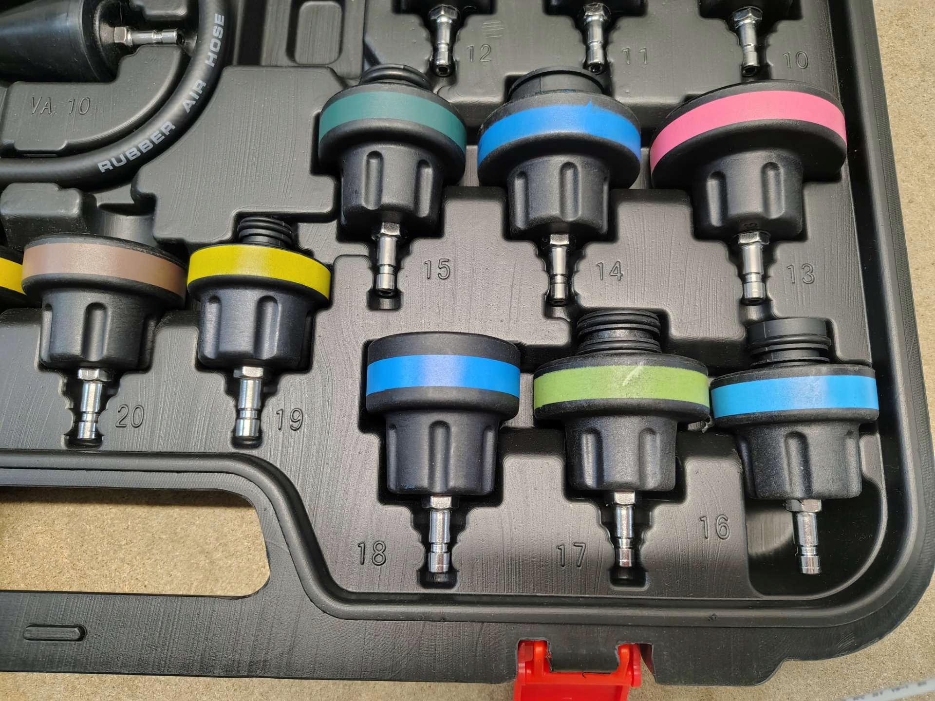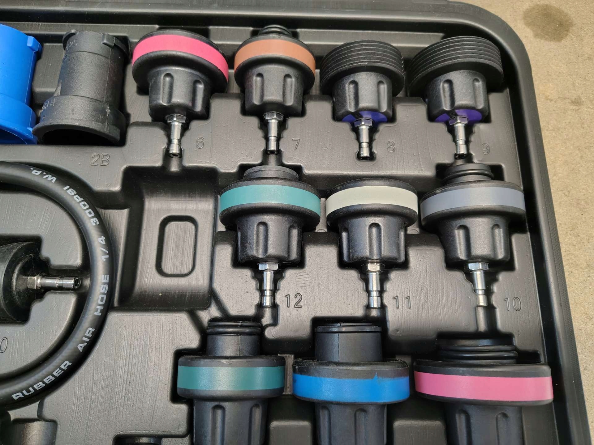 ✅ Компоненти в комплекті: BGS Diy 98098 | Пристрій для перевірки системи охолодження з системою наповнення | 27 штук