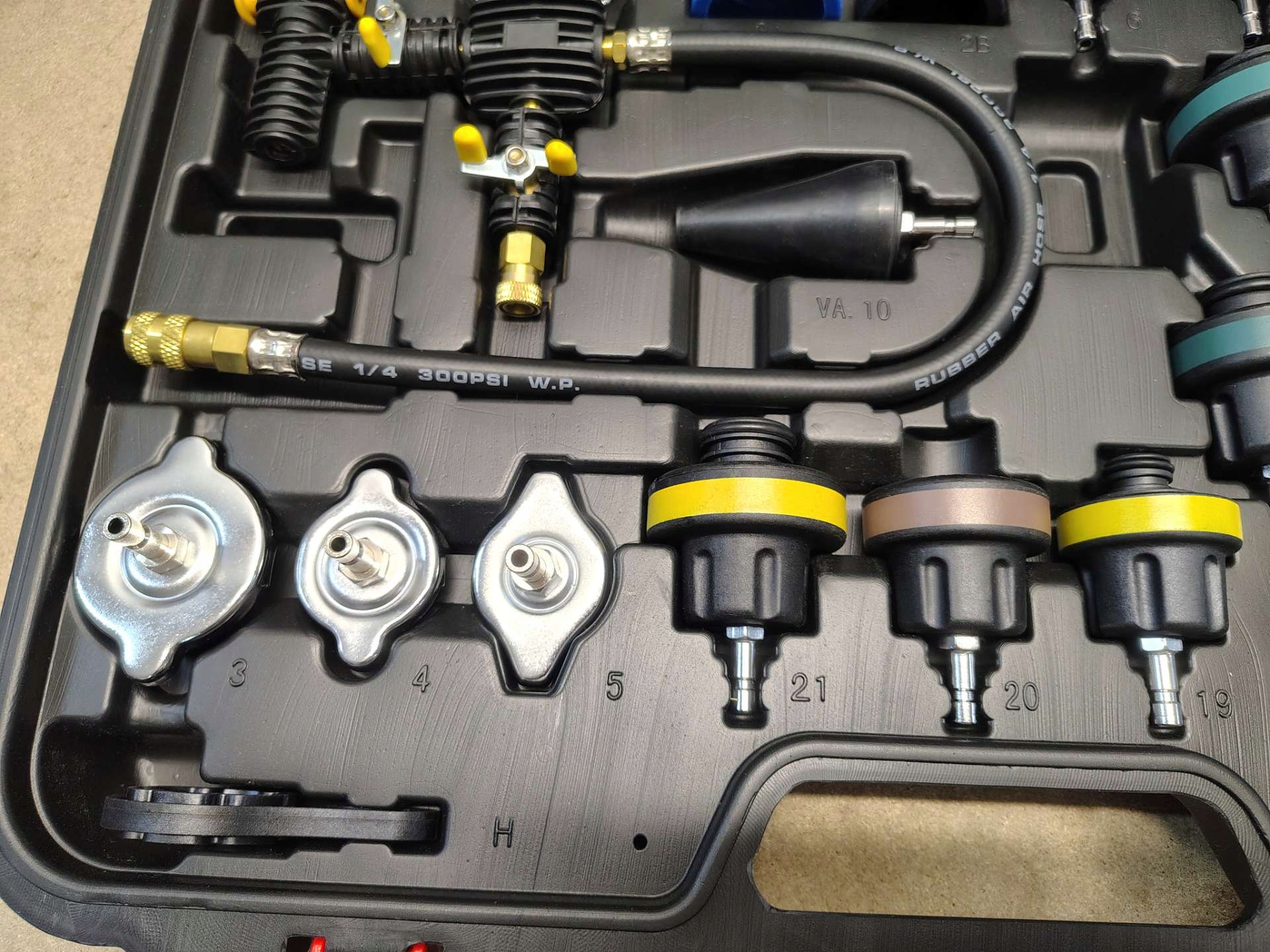 Відчуйте зручну перевірку та заповнення систем охолодження за допомогою нашого вдосконаленого набору. Просте виявлення витоків і просте заповнення без бульбашок повітря забезпечать безперебійну роботу вашого автомобіля.