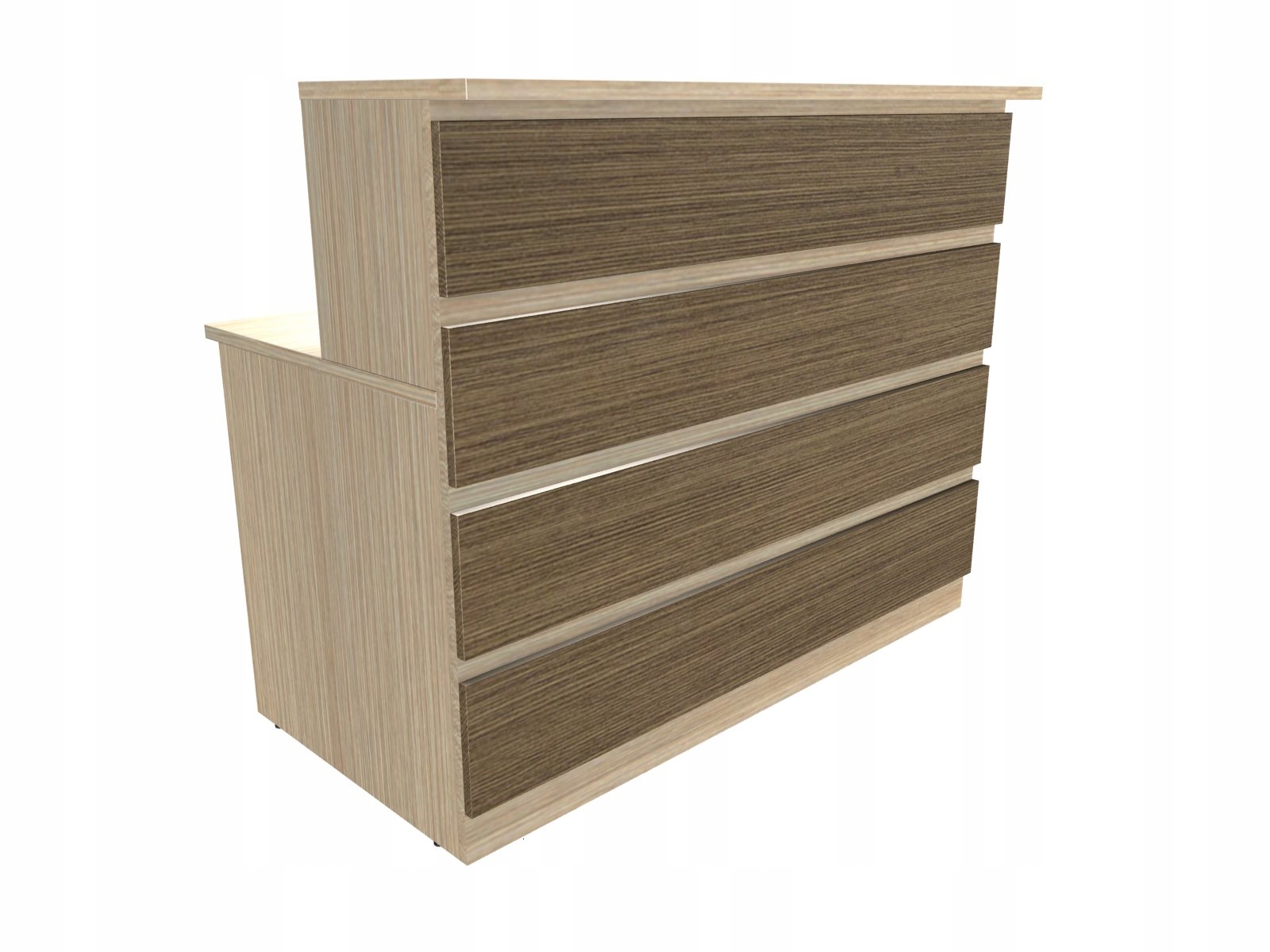 Дуже гарна пряма стійка зі стільницею довжиною 140 см, оригінальна, виготовлена з меблевої дошки відмінної якості. Стільниця і надставка виготовлені з дошки товщиною 25 мм. Стійка має регульовані ніжки, які дозволяють вирівняти меблі на нерівній підлозі. Стільниця глибиною 700 мм. Надставка глибиною 300 мм і висотою 400 мм, що дозволяє розмістити швидкозшивачі. Лічильник має дві кабельні втулки. Прямі лічильники з цієї системи є на інших аукціонах: низьких і високих. Прилавки доступні в багатьох кольорах, які також можна комбінувати, таким чином створюючи унікальні композиції. Є можливість придбати стільницю із загартованого скла товщиною 8 мм на алюмінієвих ніжках висотою 50 мм. Система офісних та рецепційних стійок складається з дуже великої кількості меблевих модулів, завдяки яким можна швидко спроектувати розстановку меблів у приміщеннях з маленькою або великою офісною площею.