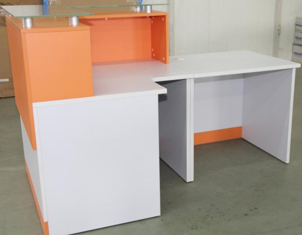 Дуже гарна, проста, невисока стійка, довжиною 80 см, виготовлена з меблевого щита відмінної якості. Стільниця з дошки товщиною 25 мм. Стійка має регульовані ніжки, які дозволяють вирівняти меблі на нерівній підлозі. Стільниця глибиною 700 мм. За вашим бажанням в прилавок можуть бути встановлені кабельні втулки.