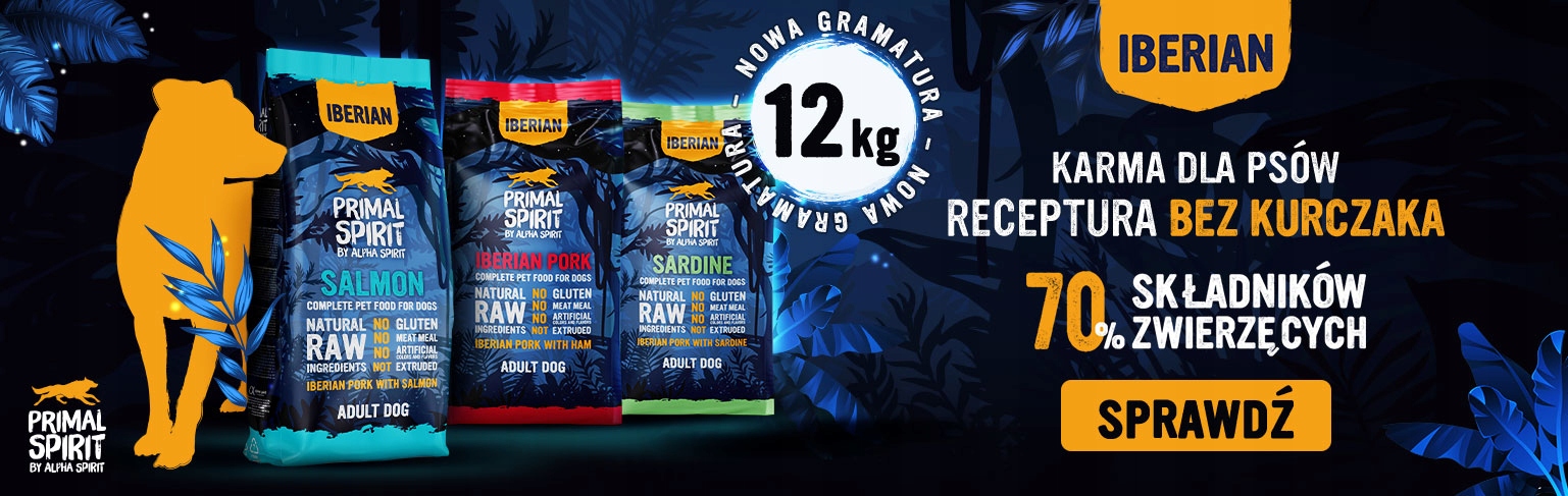 Основний інгредієнт лінії Primal Spirit Iberian -Іберійська свинина - надзвичайно ніжне, соковите та корисне м'ясо. Це джерело мінералів, таких як залізо, цинк, фосфор і селен, а також вітамінів, таких як тіамін, рибофлавін, ніацин і вітаміни B6 і B12, які благотворно впливають на здоров'я і правильний розвиток собаки.