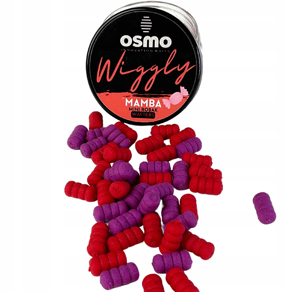 Wiggly — це серія нових інноваційних приманок Osmo. Для них характерна унікальна форма, яка може асоціюватися з хробаком або пучком кукурудзи на волоссі. Зовнішній вигляд разом з роботою «WAFTING» покликаний додатково стимулювати рибу до активного харчування. Приманка показала себе ідеально під час тривалих випробувань на воді, ми підібрали ідеальну форму, аромати та кольори, щоб зробити приманки максимально ефективними. Крім того, форма віглі була адаптована та розділена на так звані модулі. кільця, які можна від'єднати для створення різних розмірів і композицій. Один маленький модуль чудово підходить для обережної риби. Вігглі, звичайно, дуже ефективний в цілому, коли він демонструє свої найкращі якості, і, відколовши навіть маленький шматочок, ми можемо виділитися в критичній ситуації. На додаток до метод-годівниці, Wafters Wiggly також ідеально використовується в бомболові, де він ідеально замінює традиційну кукурудзу.
