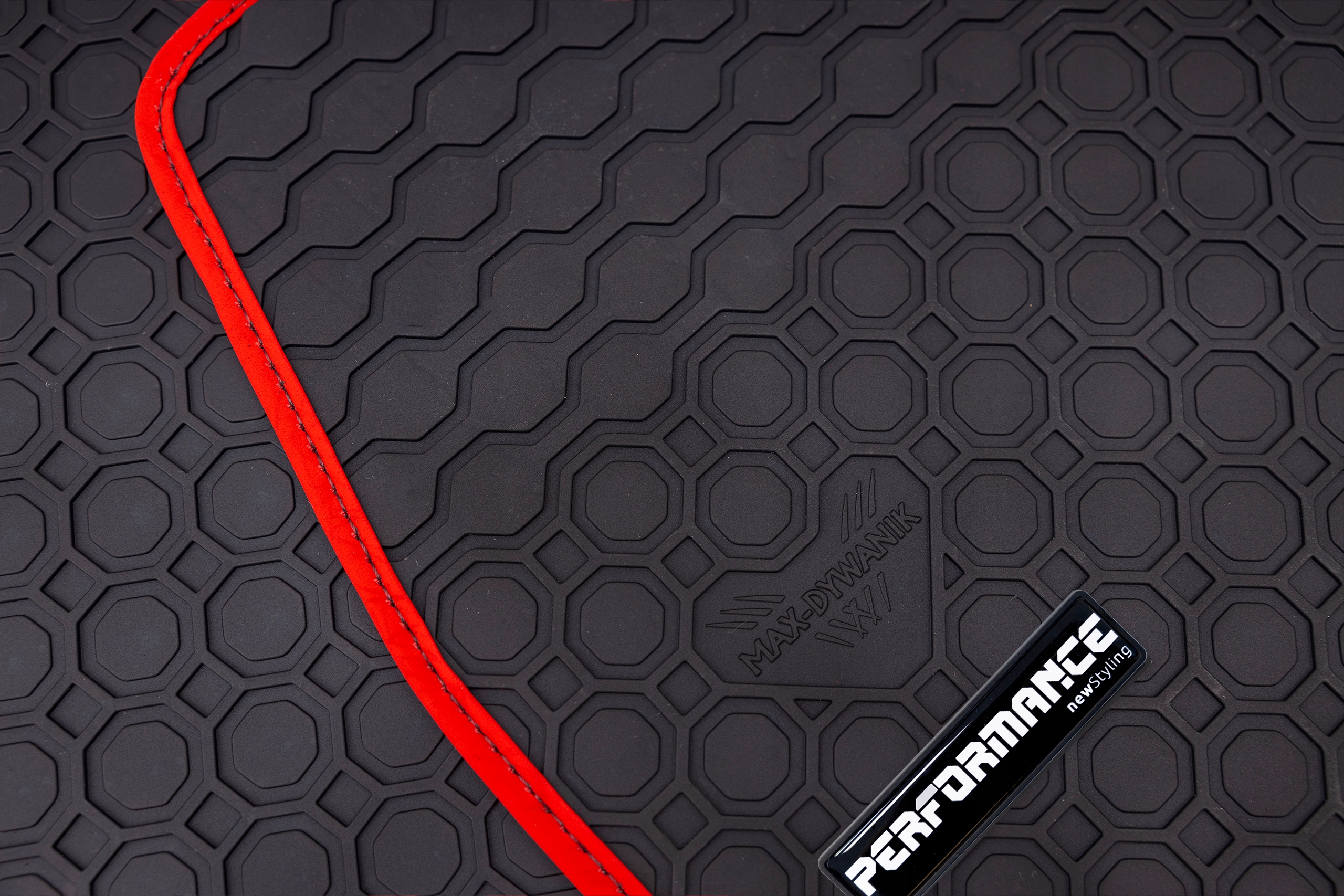 Чорний 9000GH, червоний нубук (червона нитка), силіконова емблема - продуктивність -, зупинка. за моделлю автомобіля (зміцнення у водія)