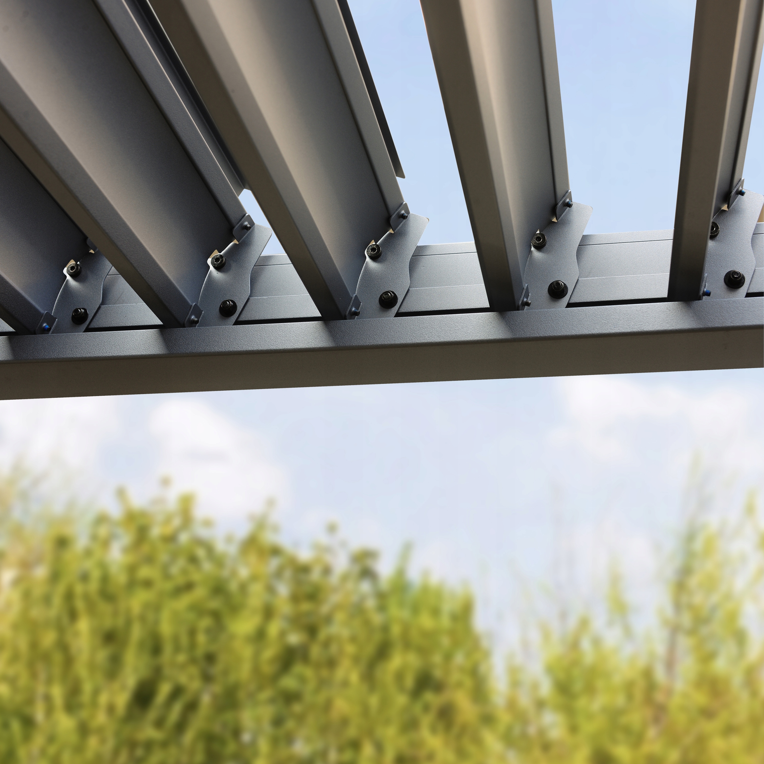 - Механізм регулювання перголи слід відкривати та закривати повільно й обережно. Не споживає електроенергію.