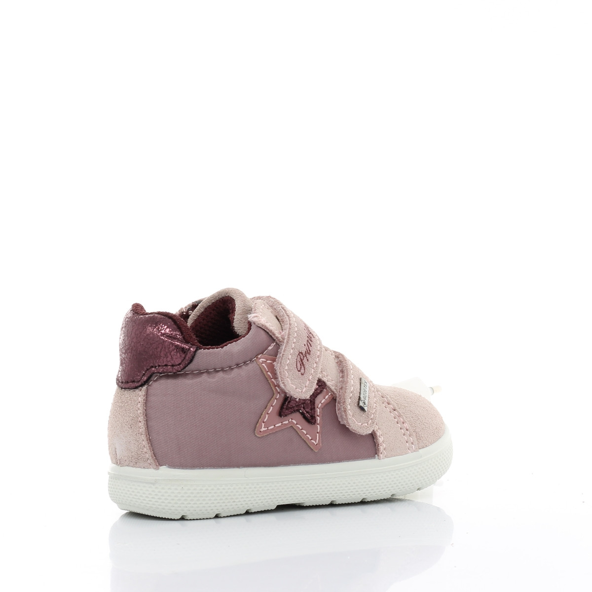 Рожеві кросівки з найвищого якісна натуральна шкіра та технічні матеріали з водонепроникною, вітронепроникною та дихаючою мембраною GORE-TEX. Взуття достатньо стійке та гнучке, внутрішня частина обшита м'яким матеріалом, який захищає ногу від стирання. Посилений каблук і відповідна висота верху забезпечують стабільність. Профільована устілка - відповідно формує правильний розвиток стопи. Застібка регулюється двома липучками. Гнучка та нековзна підошва.