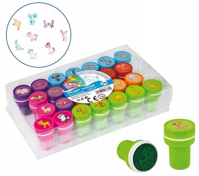 - 26 візерунків у 6 кольорах: кенгуру, жираф, верблюд, мавпа, собака, панда, тигр, медуза, риба, дельфін, ведмідь, корова, лама, олень, крокодил , осел, бобер, гепард, риба, слон, зебра, бегемот, кінь, коала, краб, свиня.
