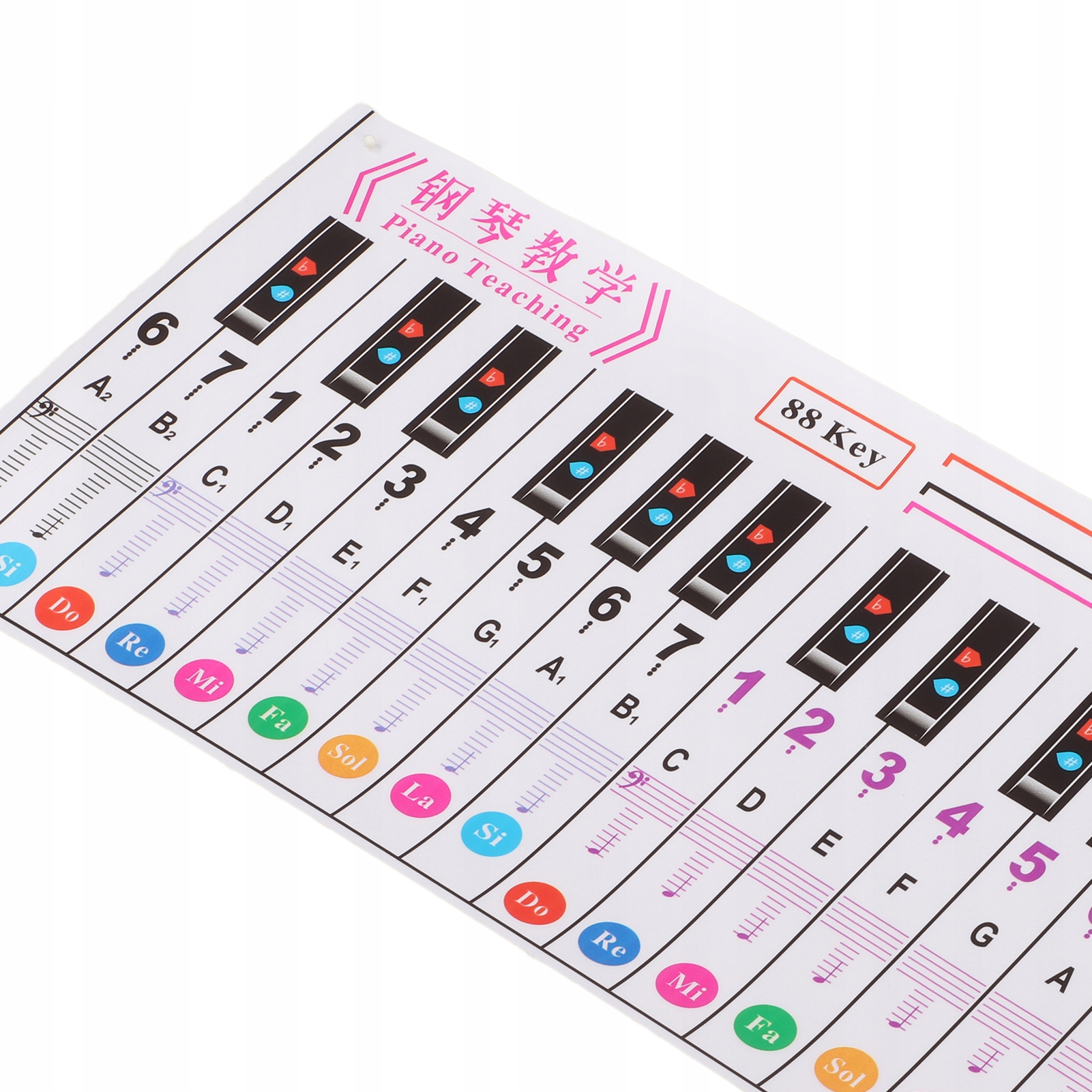 1. Діаграма 2 в 1: З пронародковим музичним позначенням та примітками до персоналу прозора діаграма з прекрасними кольорами значно полегшує вивчення музики. 88 Керівні клавіші: Розроблений для того, щоб мати стандартні 88 клавіш, як справжній фортепіано, цей графік нот фортепіано забезпечує чудовий ефект вправ. Широка практика: можна гнучко використовувати для практики різних музичних клавіатур з 37 клавішами, 49 клавіш, 54 клавіш, 61 клавіш та максимум 88 клавіш. Прості тренування: Ви можете встановити його на клавіатурі на фортепіано, щоб пройти зручну підготовку. Ідеально підходить для початківців, які хочуть швидко та ефективно вивчати нотатки. Хороша портативність: просто згорніть її в невеликий розмір, щоб носити його з собою. Він також має високу водостійкість і розрив.