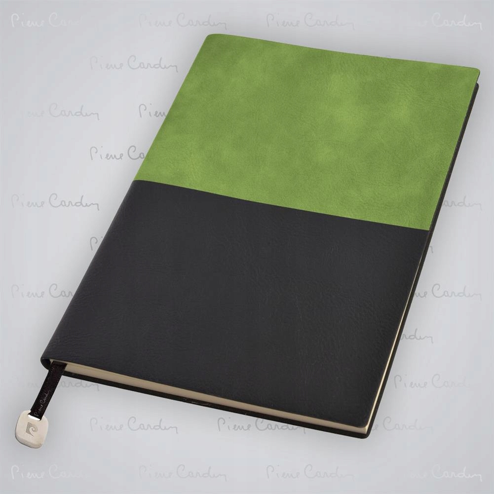 Розкішний, двоколірний зошит A5 з обкладинкою, що імітує шкіру. Він має 160 сторінок пунктирних ліній, вага 80 г/м2 та закладка з металевим елементом. На спині на обкладинці натиснуто логотип П'єра Кардіна. Упакований в елегантну подарункову коробку з сертифікат автентичності П'єр Кардін.