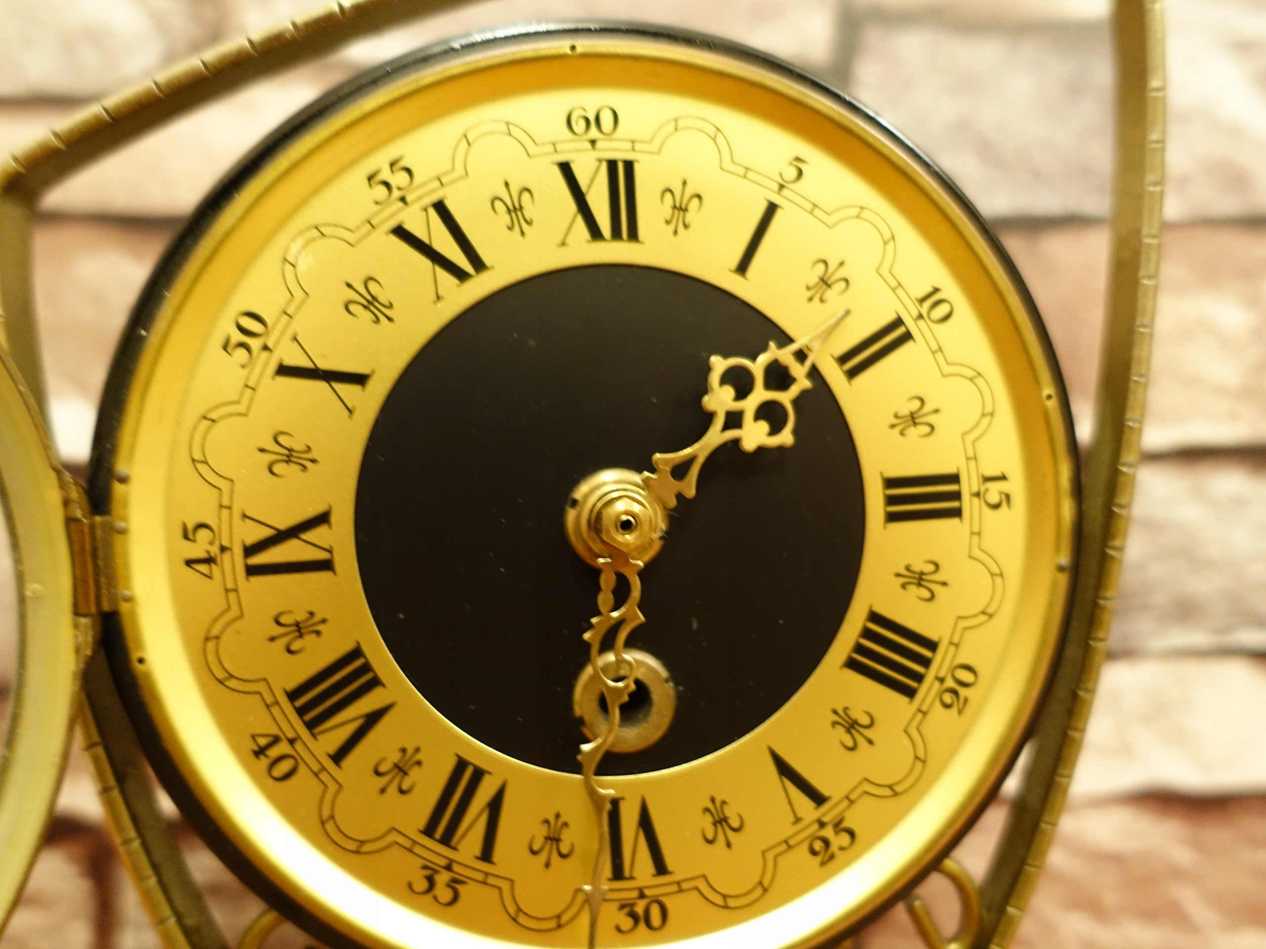 Маленький старий декоративний, німецький годинник, красиво виглядає на комоді, каміні або столі