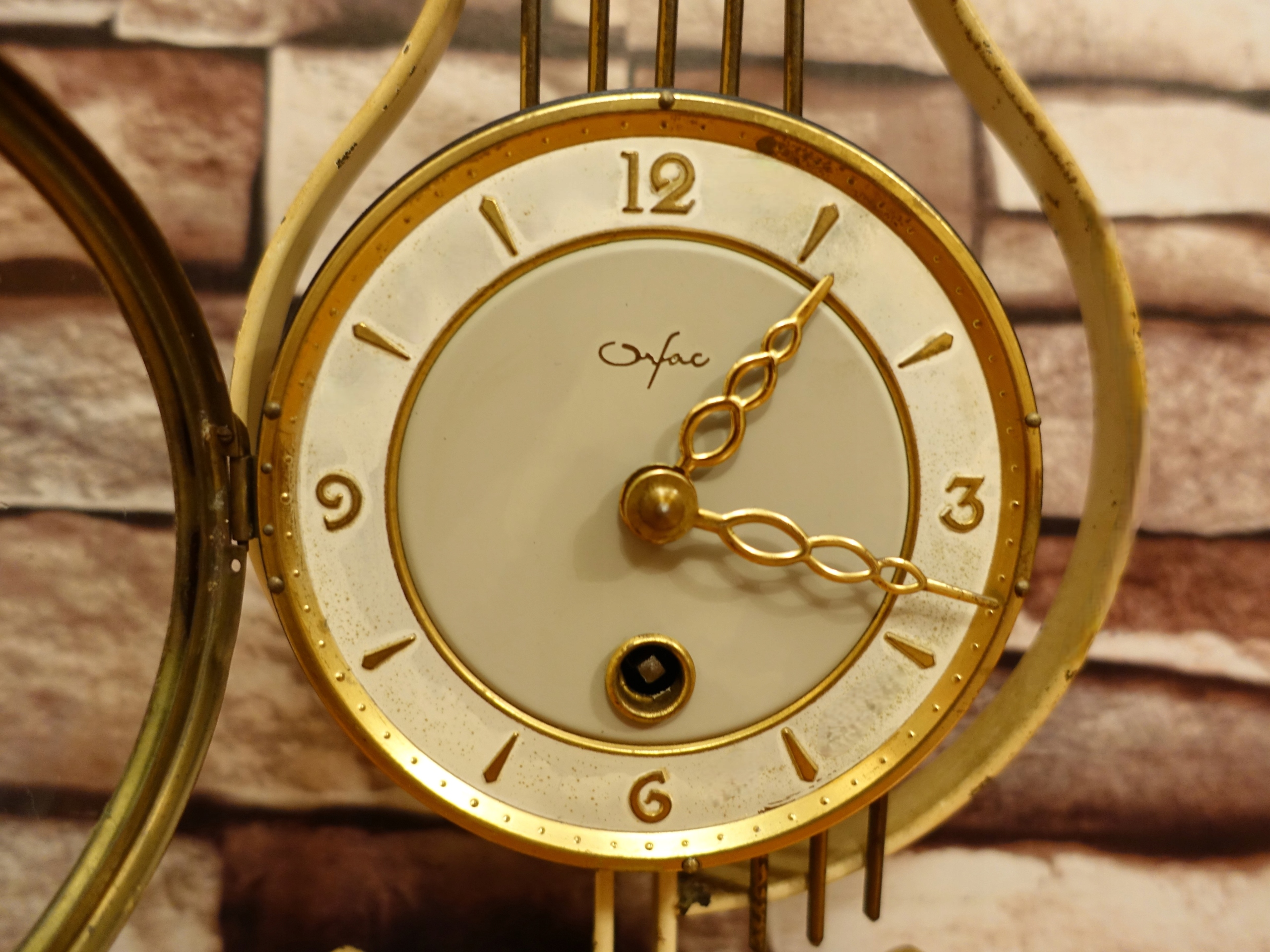 Маленький старий декоративний, німецький годинник, красиво виглядає на комоді, каміні або столі