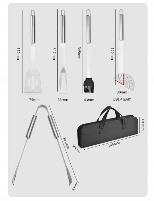❇️У набір входить 5 предметів посуду: виделка, лопатка, ніж, пензлик і щипці з нержавіючої сталі з ручкою для підвішування.