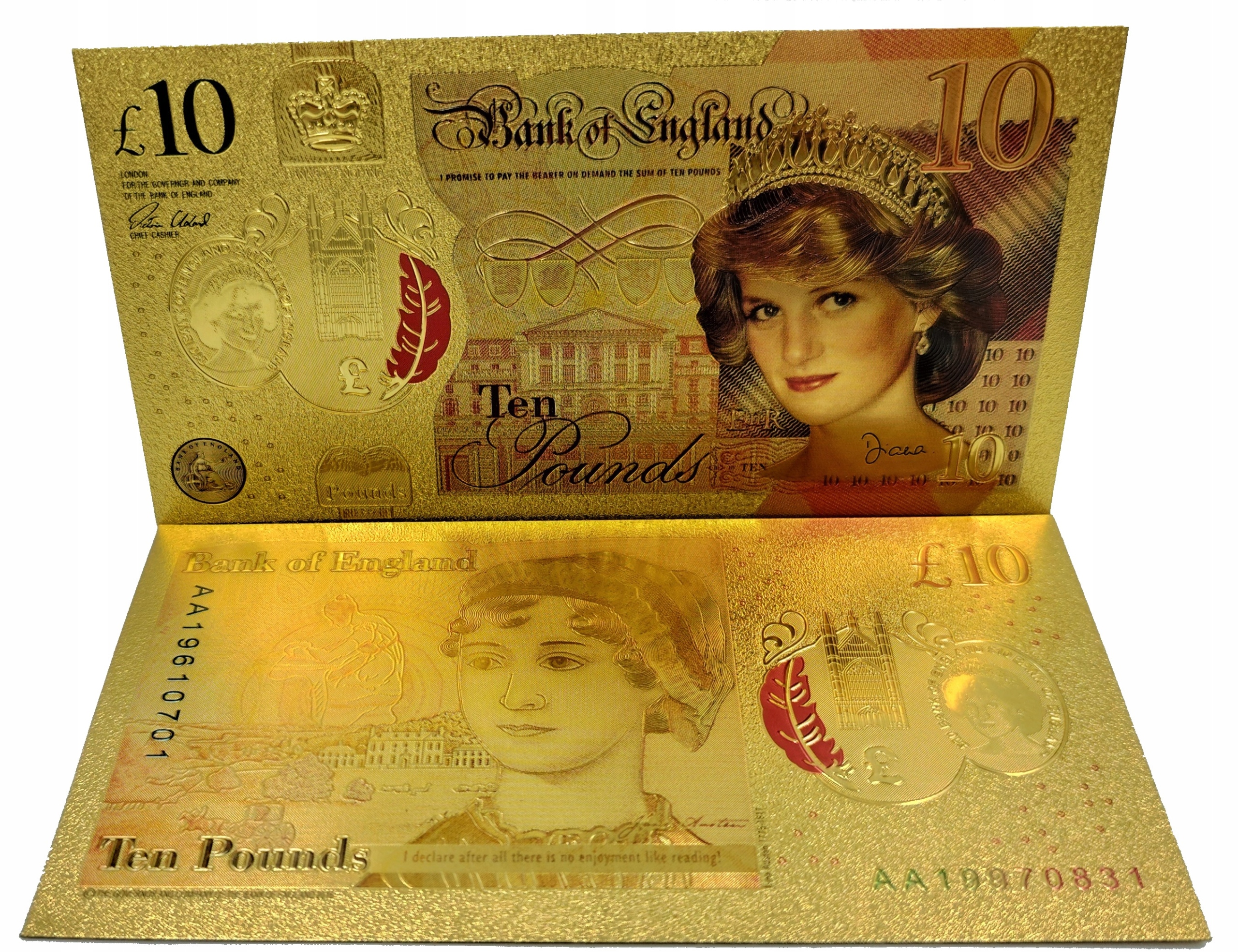 ЗОЛОЧЕНА БАНКНОТА 10 ФУНТІВ ДІАНА СПЕНСЕР