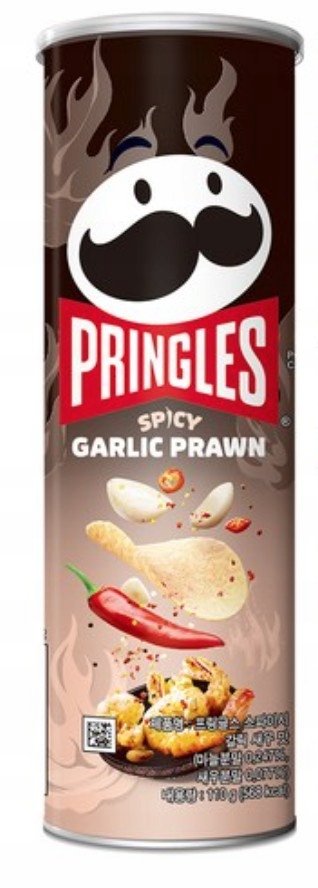 Pringles Spicy Garlic Prawn - це вибухове поєднання смаків, яке сподобається любителям гострих закусок. Ці хрусткі картопляні чіпси поєднують в собі інтенсивні ноти часнику, гострих спецій і ніжний смак креветок.