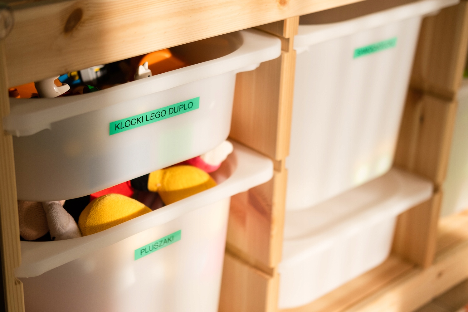 Подивіться, як легко ви можете організувати свою дитячу кімнату, позначаючи контейнери та коробки нашими стрічками.