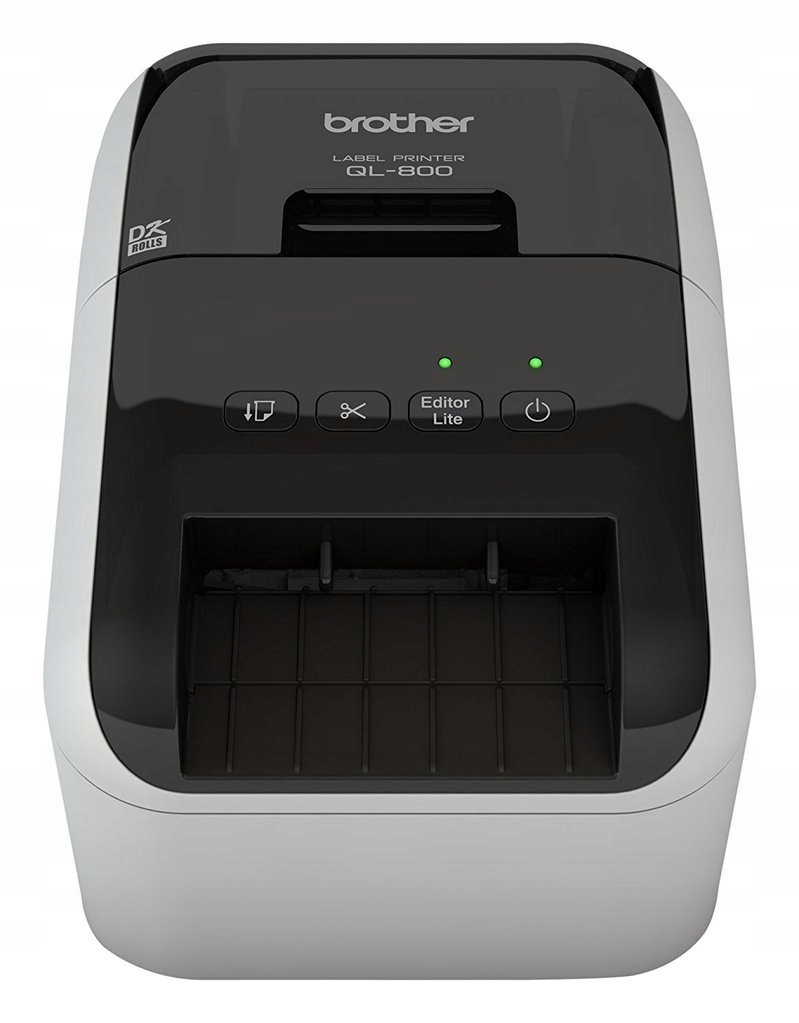 Brother QL-800 пропонує високу швидкість друку 93 етикеток. в хвилину або 148 мм в секунду. Він може друкувати на окремих паперових і пластикових стрічках довжиною 30,48 м або 15,24 м або на готових етикетках. Підтримує носії шириною від 12 до 62 мм. Пристрій оснащено вбудованою гільйотиною, яка дозволяє швидко обрізати надруковані позначки.